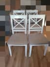 Cztery białe drewniane krzesła krzyżykowe w bardzo dobrym stanie. Wygodne i nie rozchwiane, możliwy transport. Cena 450 zł.