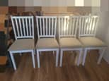 Cztery białe drewniane krzesła w bardzo dobrym stanie. Wygodne i nie rozchwiane, możliwy transport. Cena 450 zł.