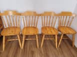 Cztery krzesła sosnowe patyczaki ,w bardzo dobrym stanie. Możliwy transport, cena za komplet 420 zł.