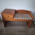 Toaletka z lustrem, drewno sosnowe, wymiary długość 76 cm, głębokość 41,5 cm, wysokość całkowita 159 cm, wysokość do blatu 103 cm. Możliwy transport. Cena 450 zł.
