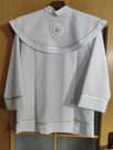 Śliczna alba, biała,delikatna, jak nowa.Wymiary: długość całkowita 65 cm, szerokość w ramionach 38 cm, długość rękawa od pachy 41 cm, długość od góry 50 cm, szerokość 49 cm.Na chłop