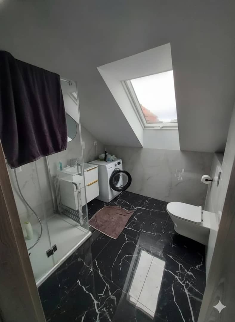 • Ogrzewanie podłogowe zasilane pompą ciepła DeDietrich – bardzo niskie koszty utrzymania (czynsz 200 zl)