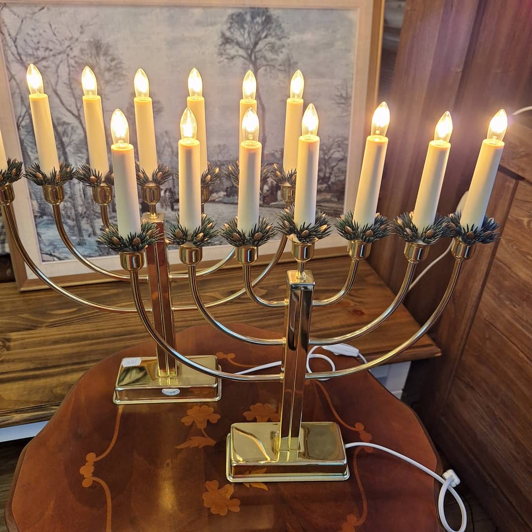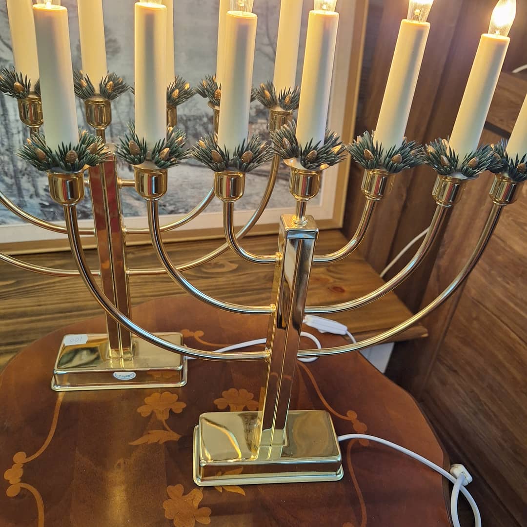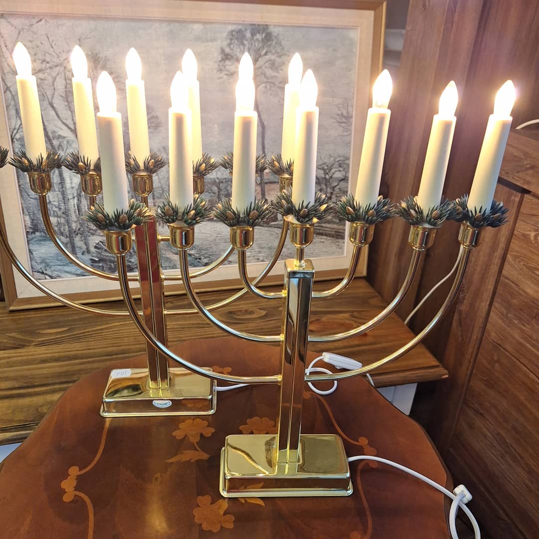 Dwa świeczniki adwentowe w złotym kolorze 180 zł.