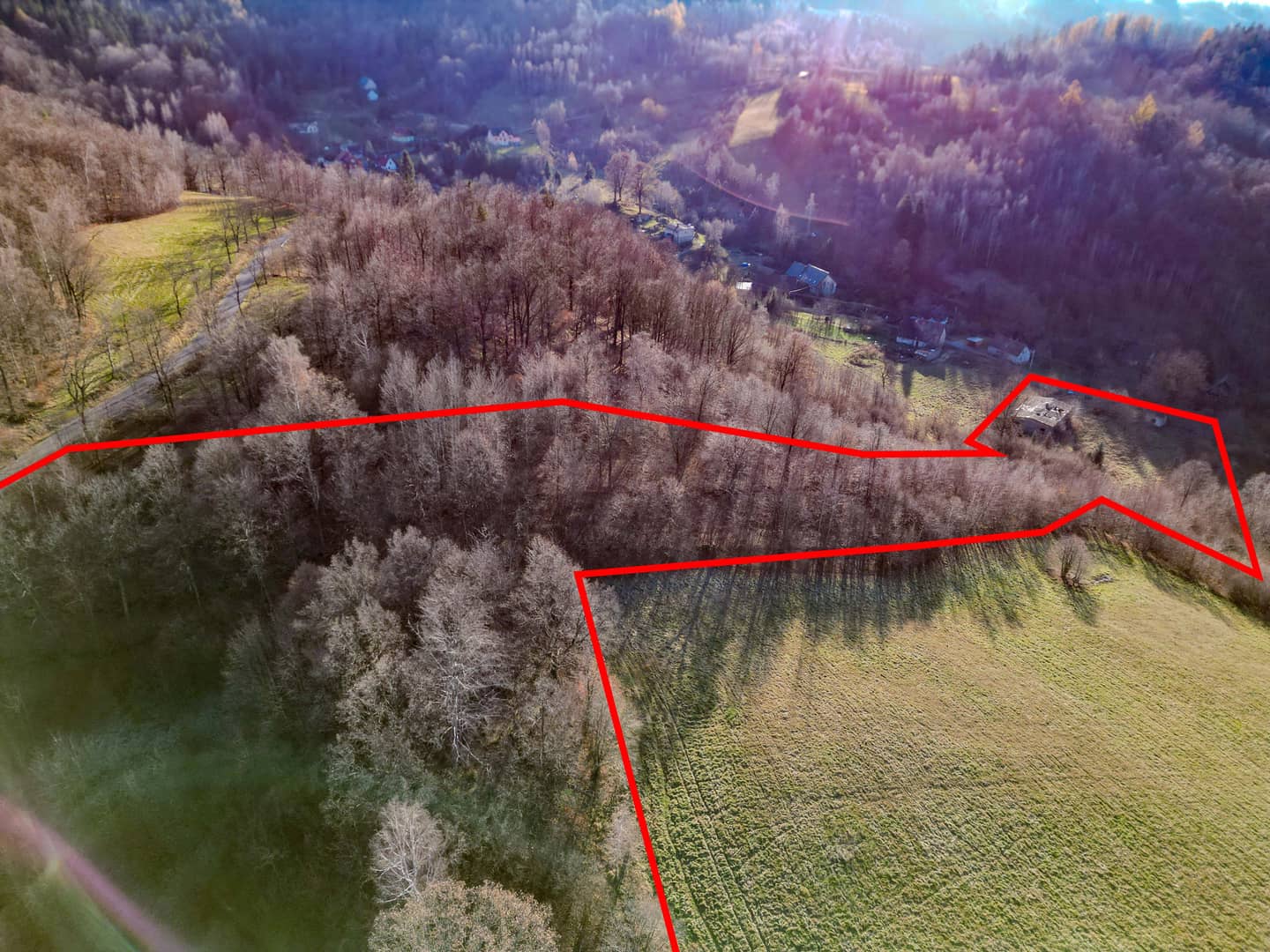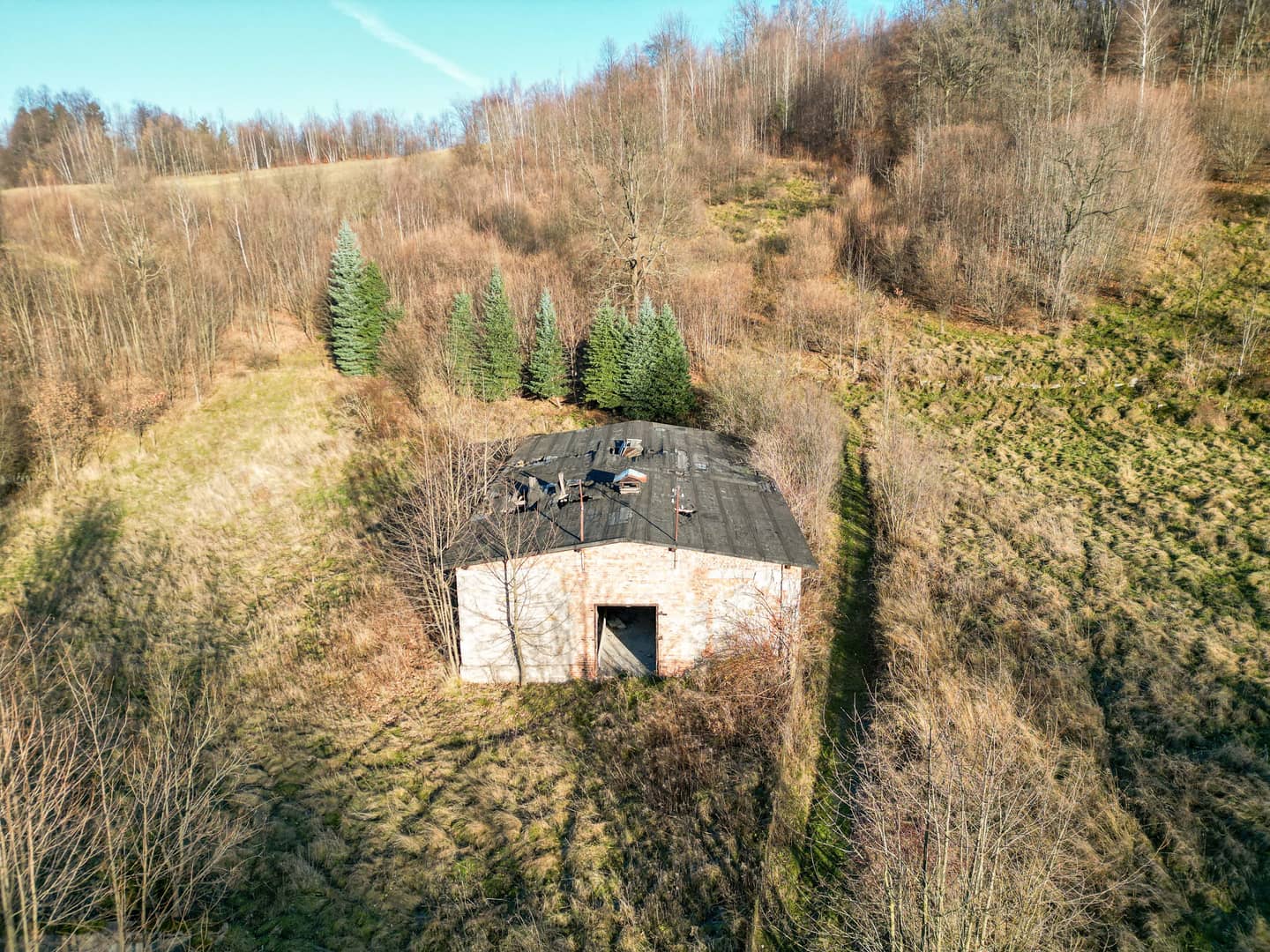 W dolnej części kompleksu składającego się z 3 działek o łącznej powierzchni 3,04 ha znajduje się dawne zabudowanie gospodarcze.