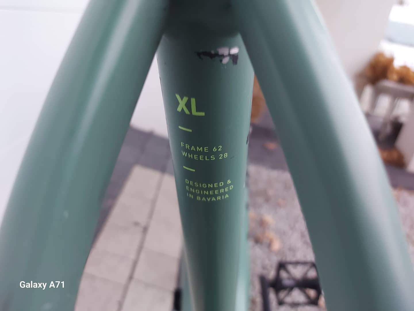- rama aluminiowa , wytrzymała , rozmiar "XL" ( 62 cm od suportu (pedał) do mocowania pod siodełkiem )