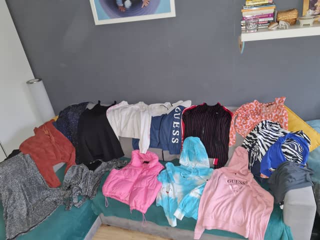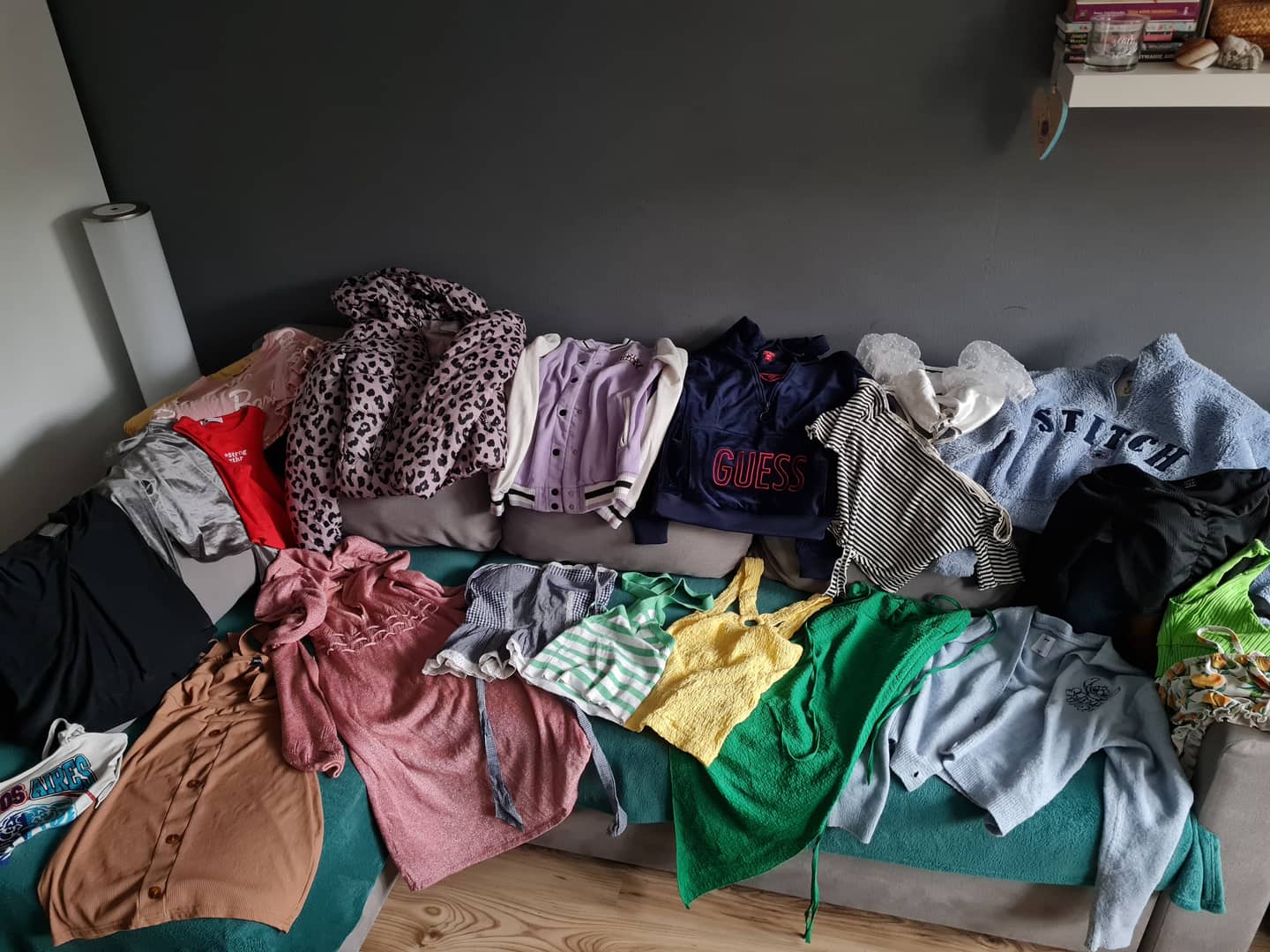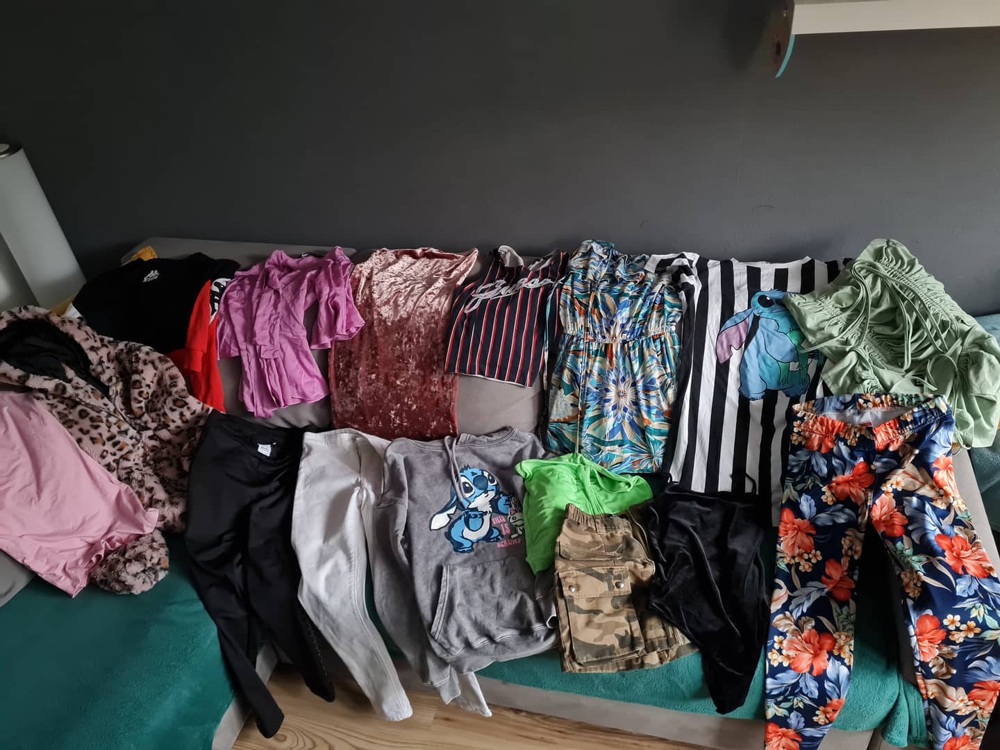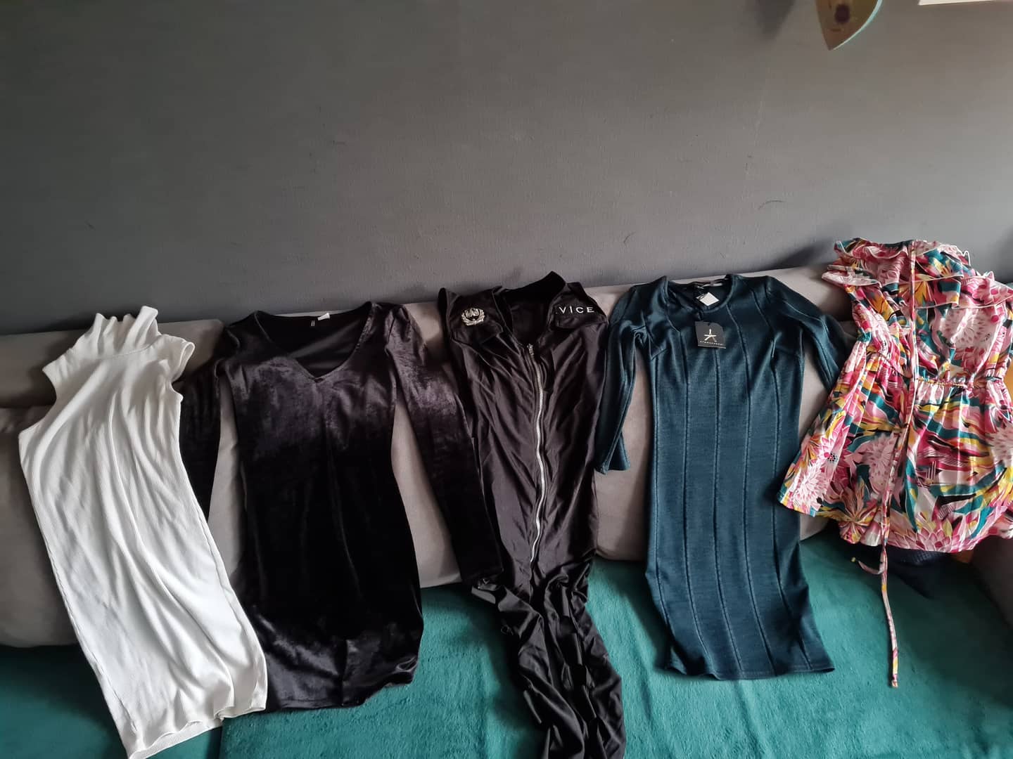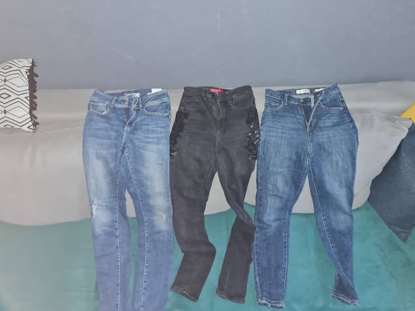 Zestaw ubrań damskich/dziewczęcych w rozmiarze XS/S. Dużo ciuchów marki Guess ,berskha. W komplecie znajdziesz koszulki,bluzy,bluzy na zamek,kurtka,kamizelka,sukienki oraz 3 pary jeansów GUESS roz.24.