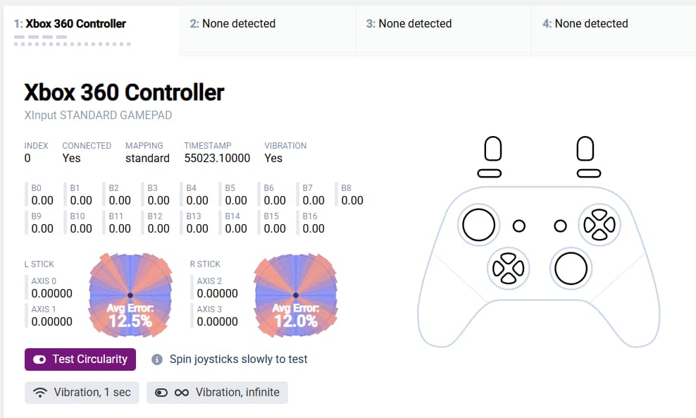 Drążki idealnie wracają w punkt 0;0 a tzw. Test Circularity daje błąd na poziomie 12% co jest idealnym wynikiem w tego typu technologii analogów.