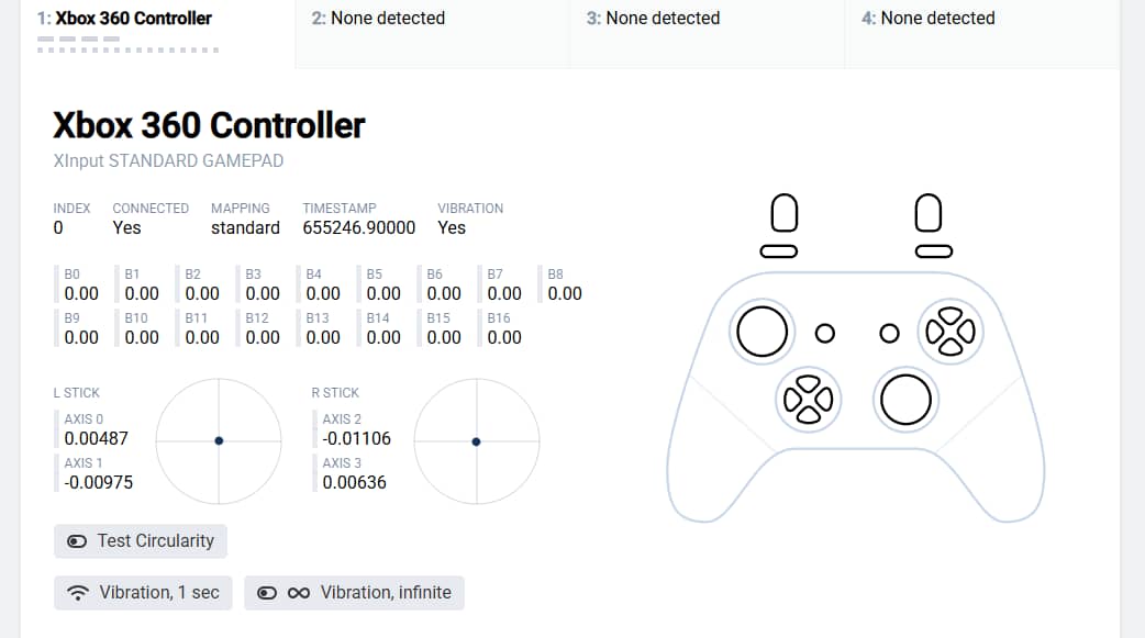 Wszystko chodzi płynnie, drążki nie dryfują, przyciski nie tną. Wyniki testu potwierdzają jego stan.