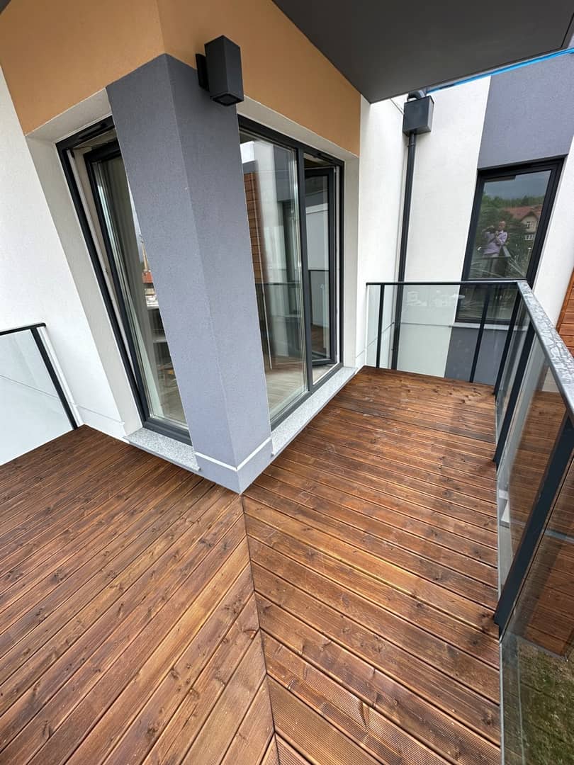 Blok 3-y piętrowy z windą wybudowany z Silki i wykończony z wysokiej klasy materiałów, piękne balkony ze szklanymi balustradami.