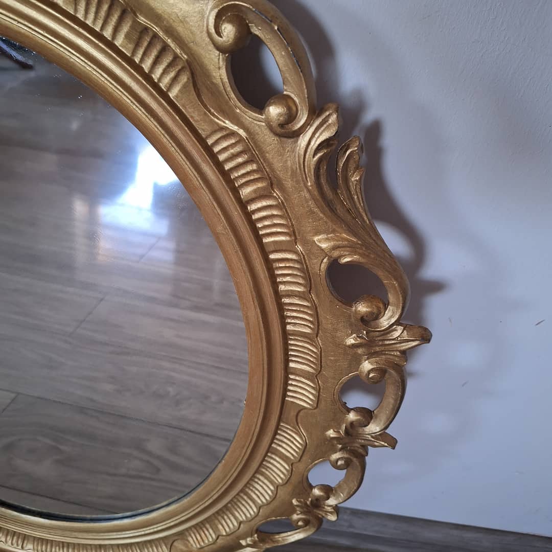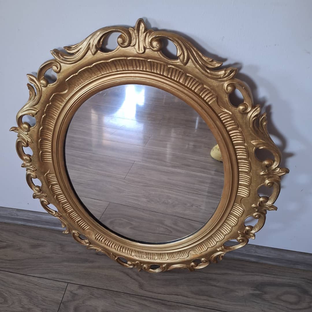 Lustro owalne w stylu glamour, ozdobna rama z tworzywa sztucznego .Wielkość 68/57 cm. Możliwy dowóz lub odbiór osobisty. Cena 100 zł.