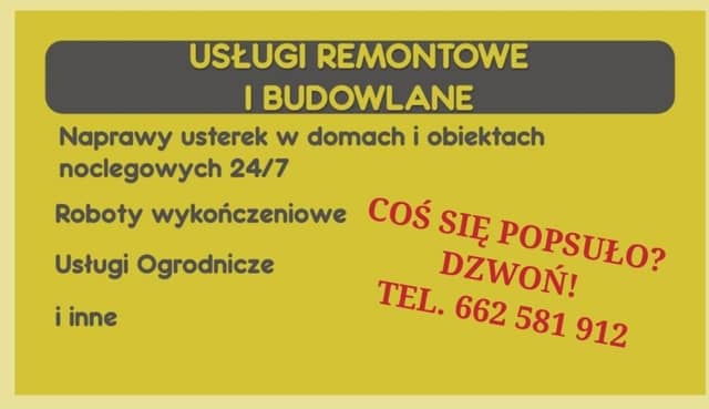 Witam serdecznie,obecnie los nie sprzyja i poszukuje pracy jako konserwator,techniczny w obiekcie hotelowym lub na telefon. Posiadam własny transport i sprzęt. Zajmuje się usuwaniem usterek, naprawą sprzętu ogrodniczego,tapetowanie,układanie glazury,paneli,lameli,malowanie, szpachlowanie sucha zabudowa, biały montaż, spawaniem itp. ponad 10 lat doświadczenia. Zapraszam do kontaktu