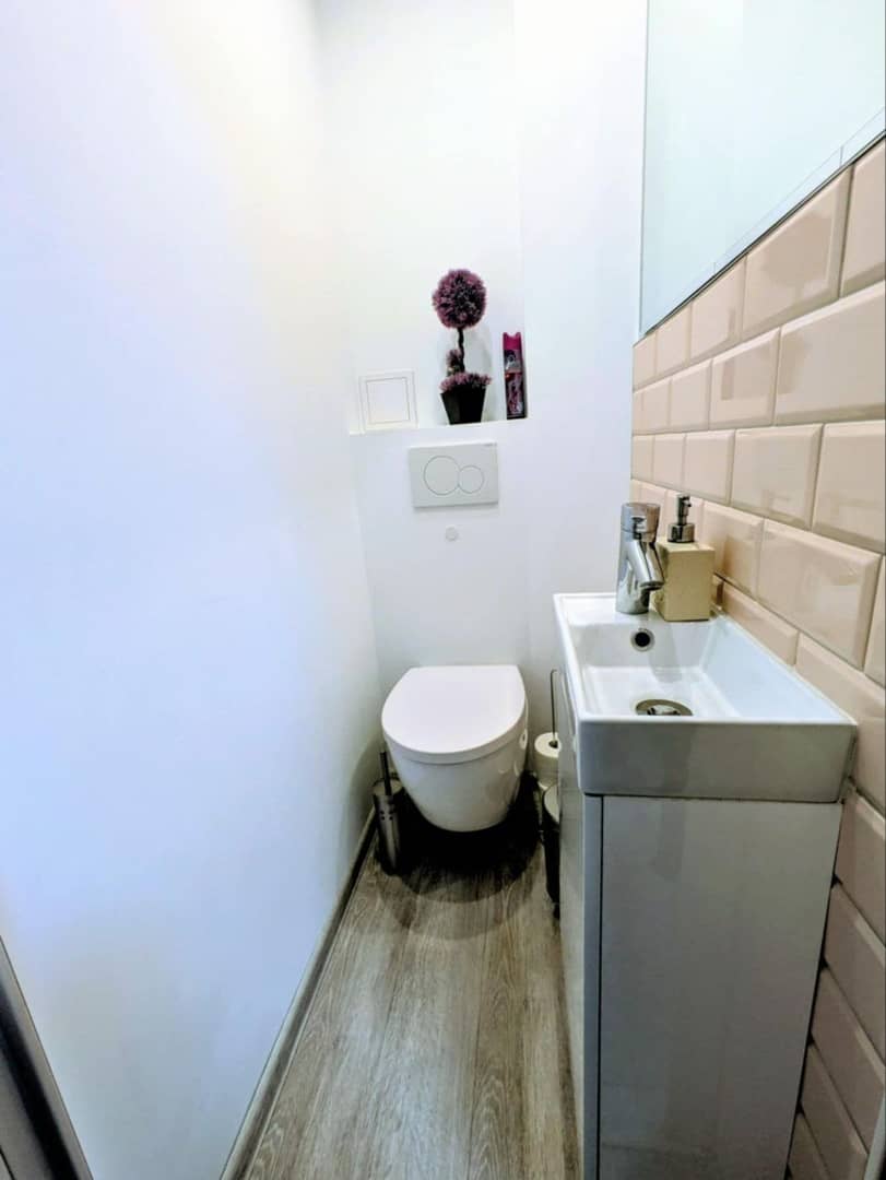 W toalecie dodatkowym atutem jest zamontowana umywalka i podwieszana ubikacja. W mieszkaniu są także nowe główne drzwi antywłamaniowe. Na podłogach znajdują się panele winylowe wysokiej jakości. Okna PCV.