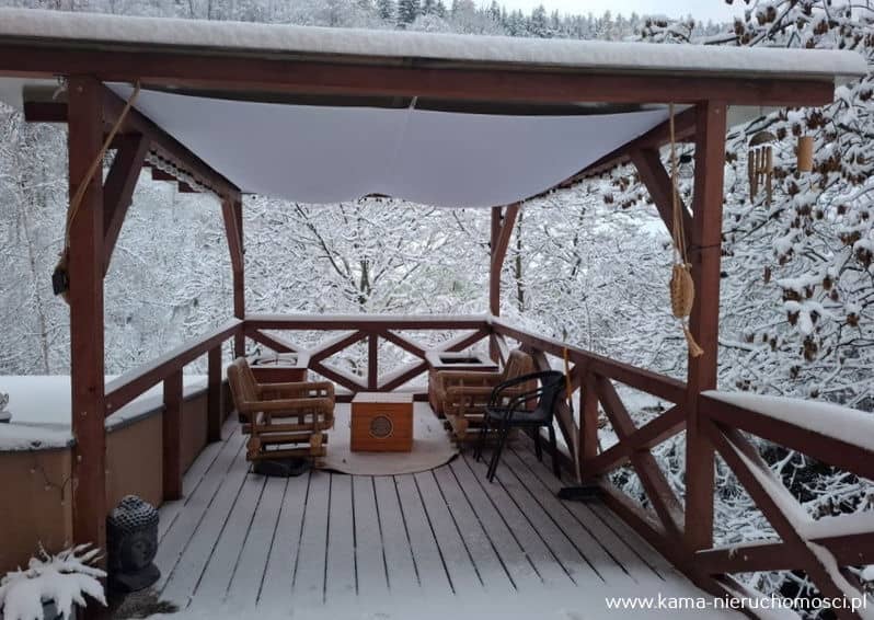 - salon z wyjściem na zadaszony taras oraz z bezpośrednim zejściem do ogrodu