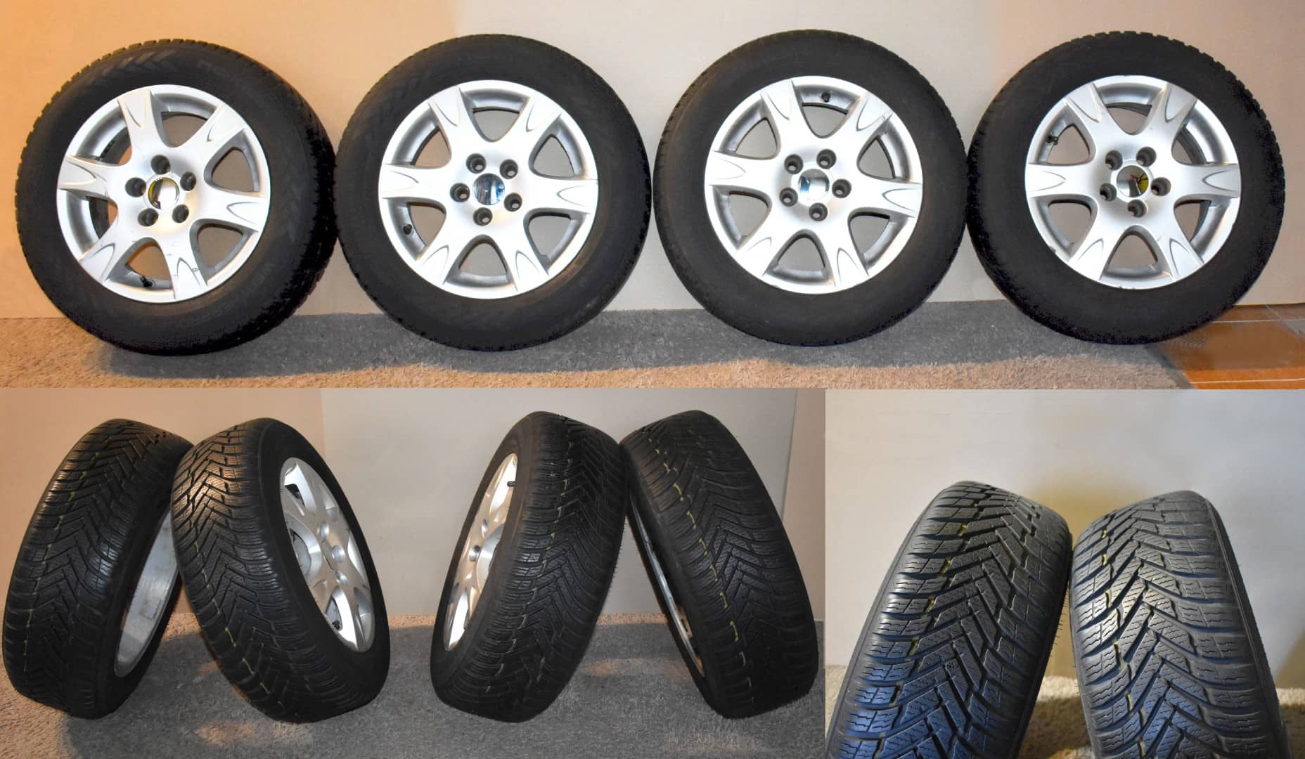 Komplet kół (opon z felgami) 185/60 R14 82H na alu felgach 6Jx14 ET43. Opony NOKIAN lato/zima prawie nowe mało jeżdżone (data produkcji 19 tydz./2021r.)
