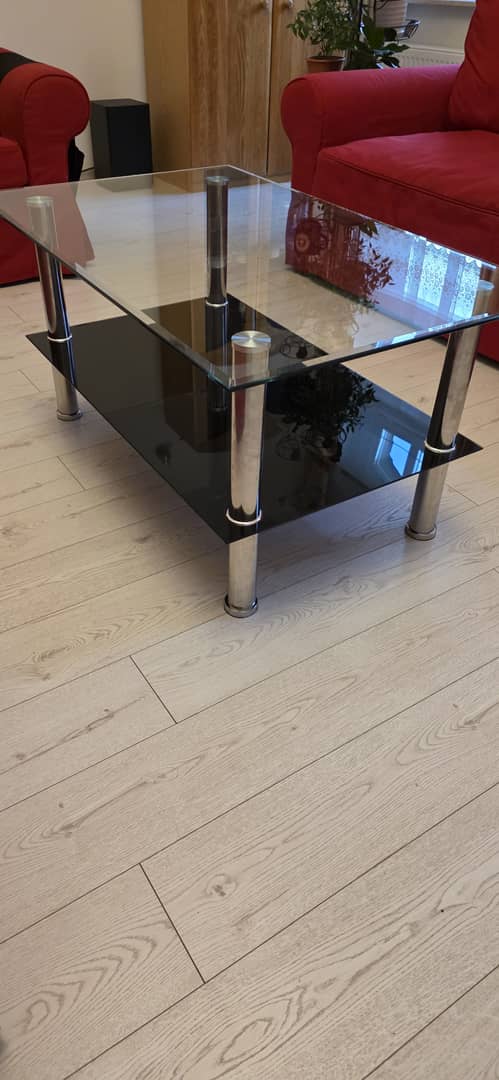 Sprzedam stolik kawowy szklany z chromowanymi nogami, wymiary (długość, szerokość, wysokość) 103cmx63cmx50cm.Cena 100zł. Odbiór we własnym zakresie.