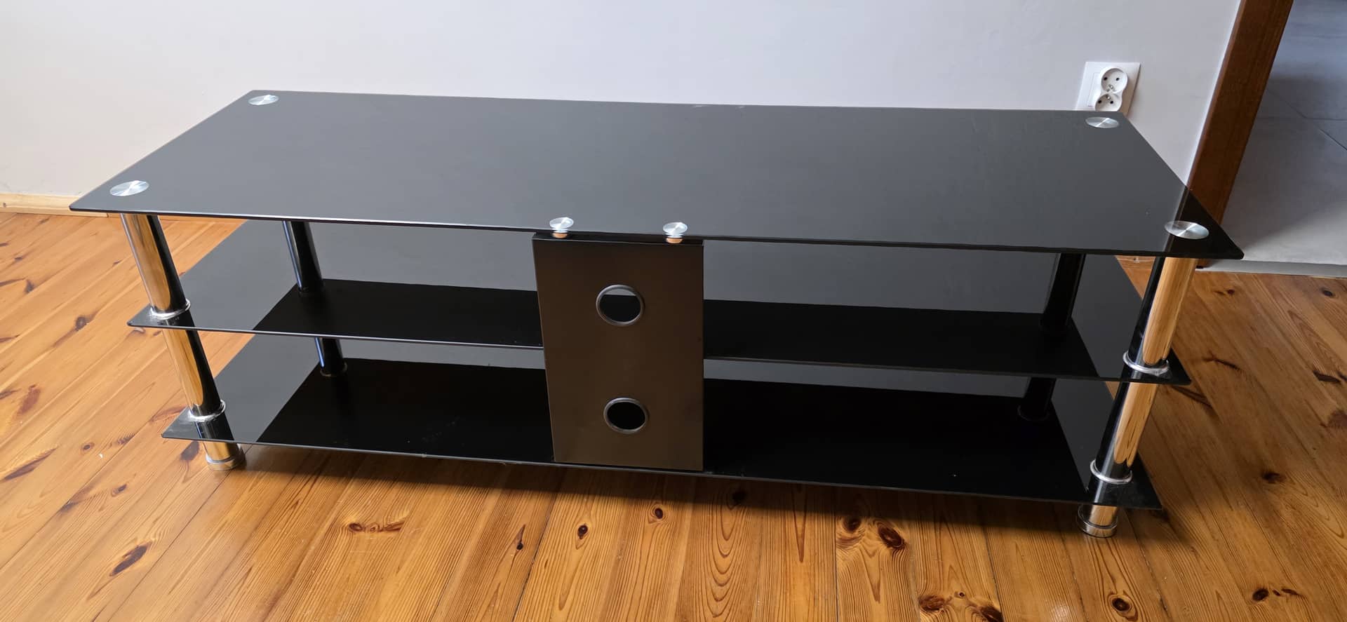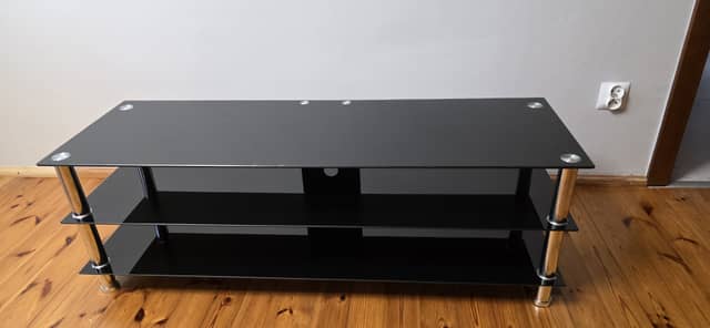 Sprzedam szklaną szafkę RTV na chromowanych nogach. Wymiary (długość x szerokość x wysokość) 120cmx40cmx40cm. Cena 100zł. Odbiór we własnym zakresie.