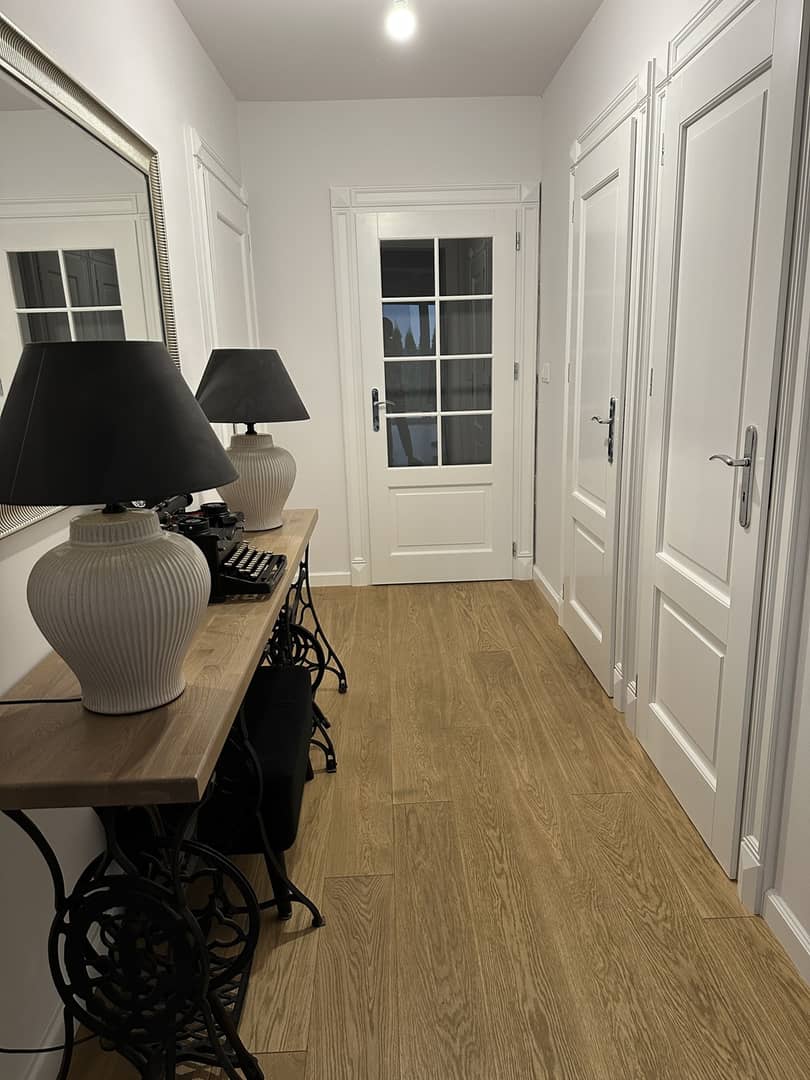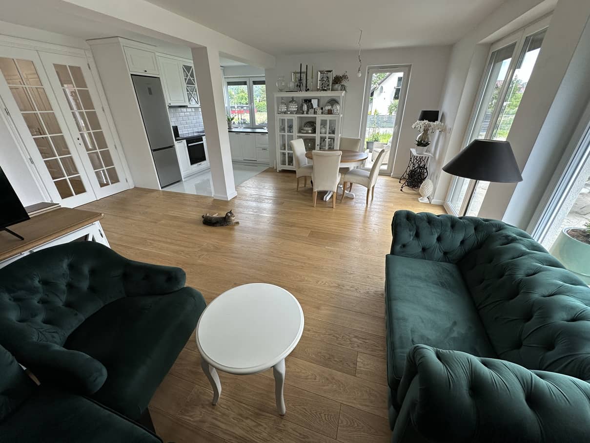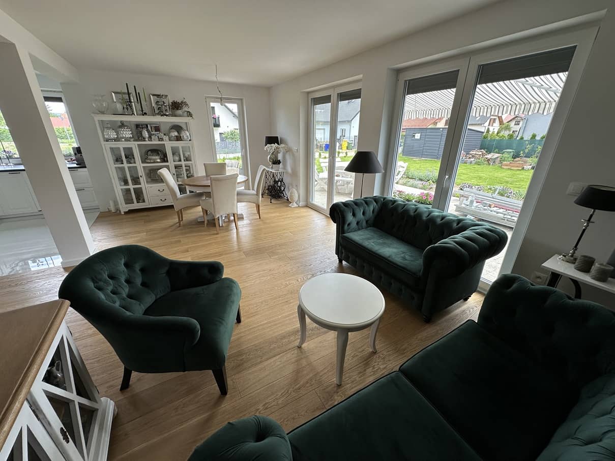 - na podłogach w całym domu deska drewniana dębowa
