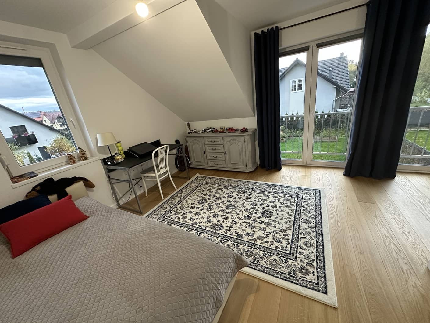 - sypialnia 24m2 z drzwiami tarasowymi