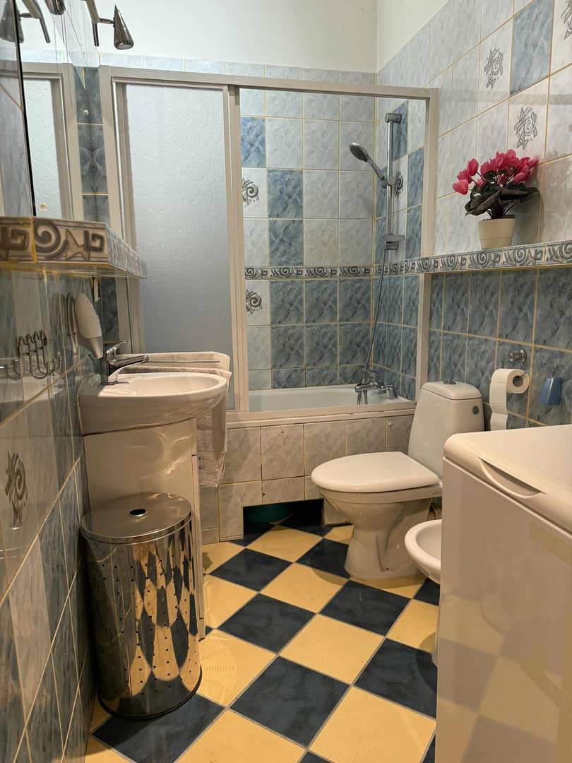 łazienka z wanną i WC. Dodatkowo przynależy do mieszkania komórka o powierzchni 2,40 m2.