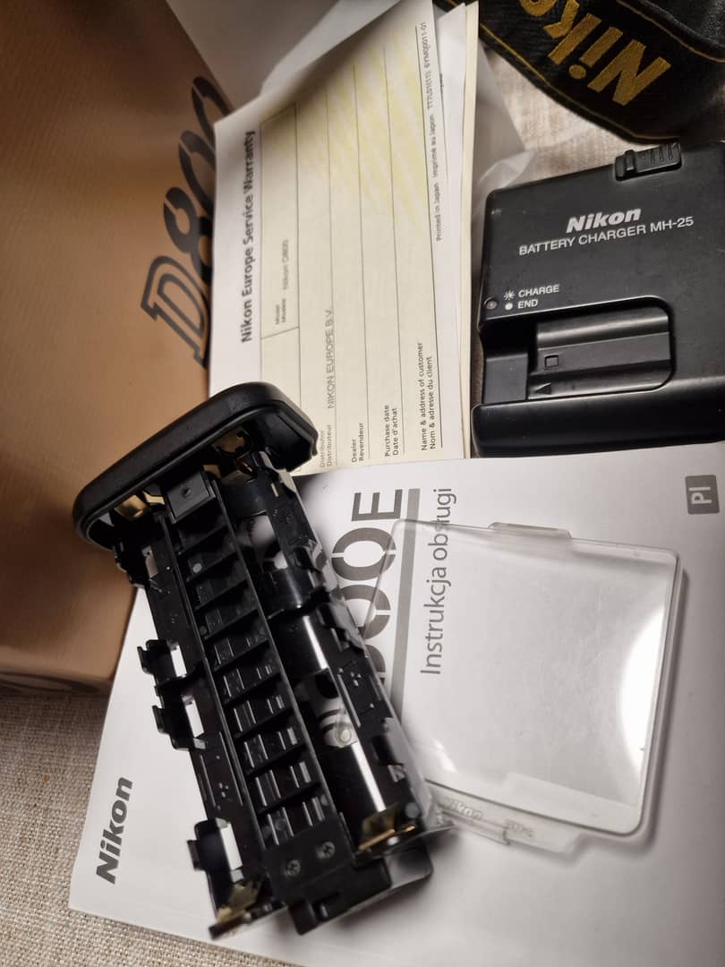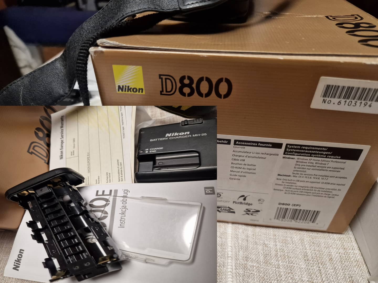 W eleganckim stanie aparat na wypady w góry i do miasta. Pełna klatka 130K nalotu na body to zaledwie 1/5 tego co ten Nikon jeszcze wypracuje. Nigdy nie fil - zawsze foto.Idealny do rejestrowania kadrów sportowych. Klasa Nikona z potężnym zapasem rozdzielczości 36,3 Mp,The Nikon D800 is a high-resolution (36.3MP) full-frame DSLR known for its detailed images, featuring a 3.2" fixed LCD, 51-point AF system, 100-6400 ISO (expandable), 4fps burst, and Full HD video recording, using dual slots for CF and SD cards. Key specs include its durable build, Nikon F-mount, USB 3.0, and optional GPS support, making it a powerful tool for serious photographers