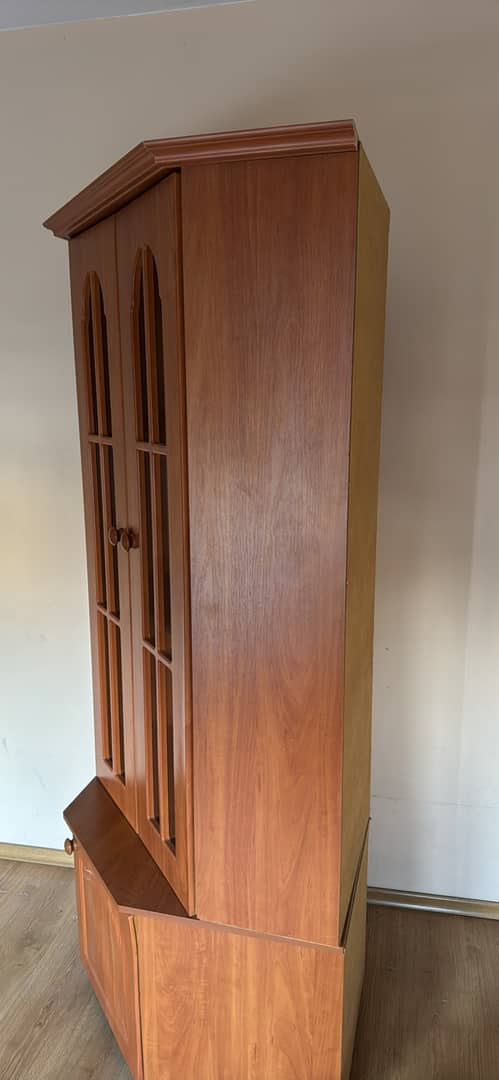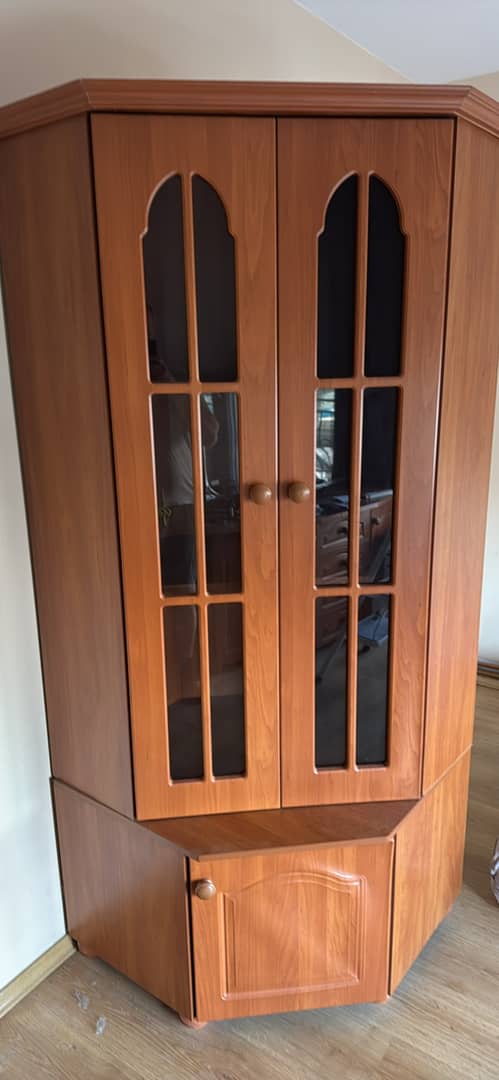 Za symboliczną złotówkę oddam regał z witryną narożny. Stan używany, dobry.