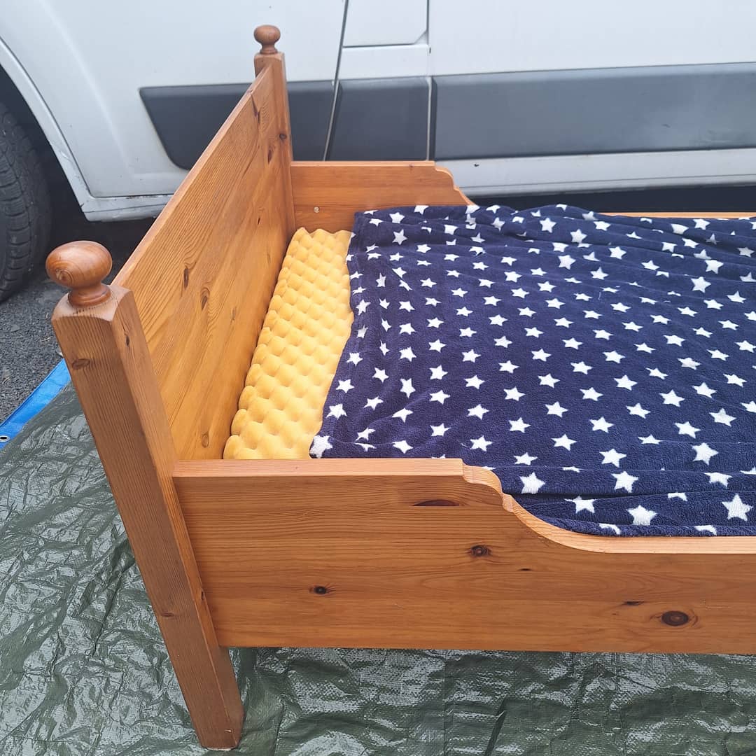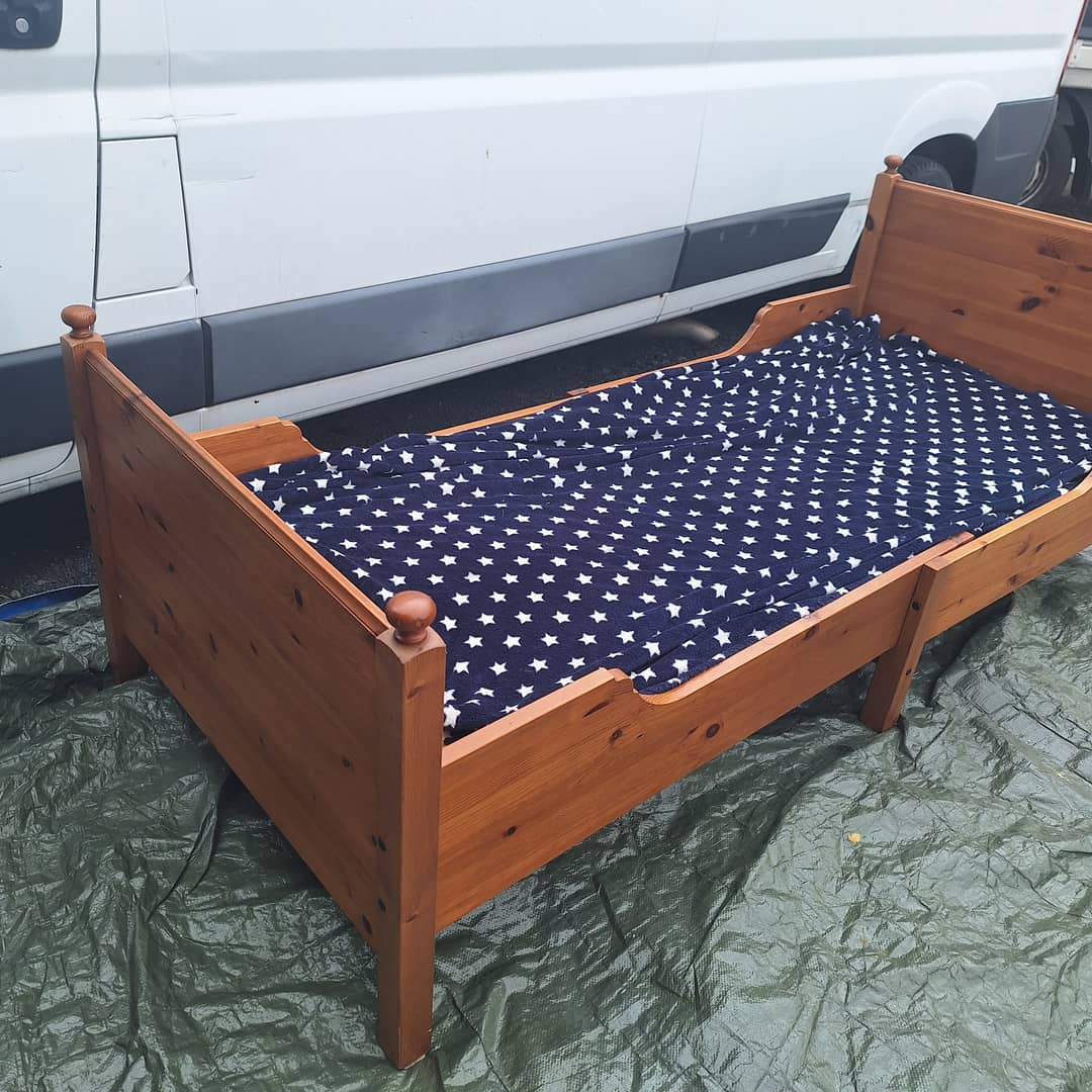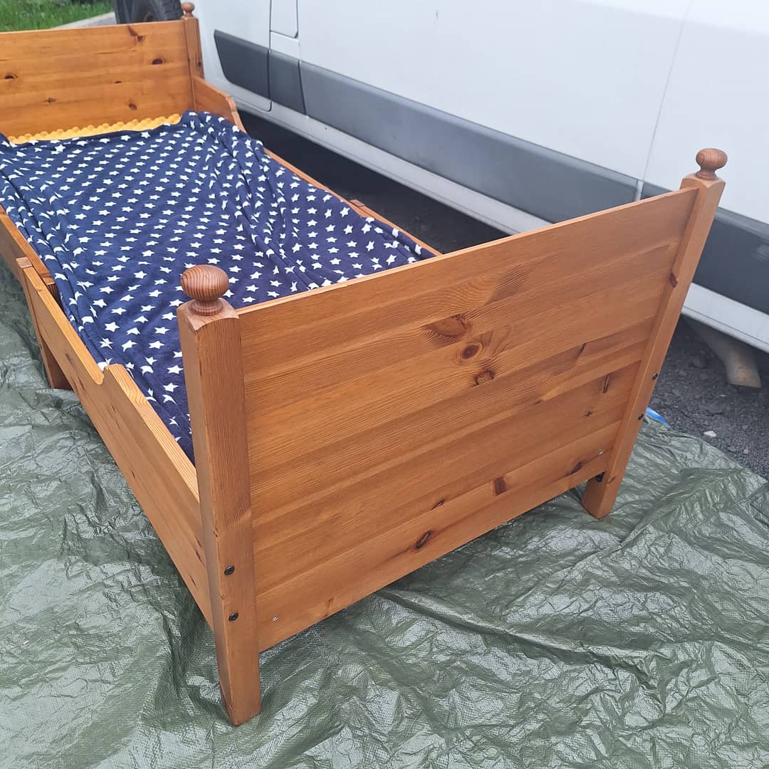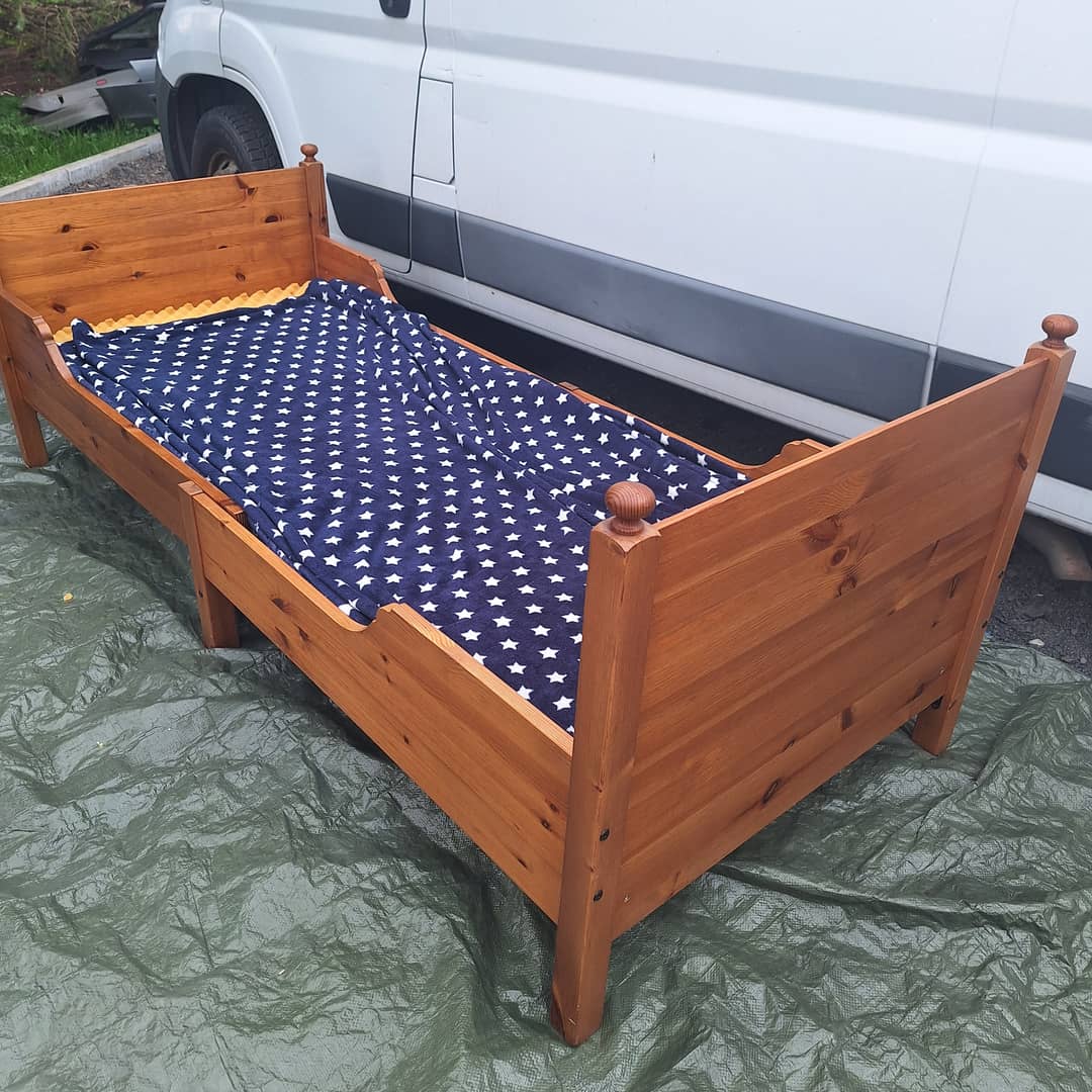 Łóżko sosnowe rozsuwane,regulowana długość ,najmniejszy wymiar to 132 cm, najdłuższy 205 cm, szerokość 90 cm. Możliwy transport. Cena 300 zł.