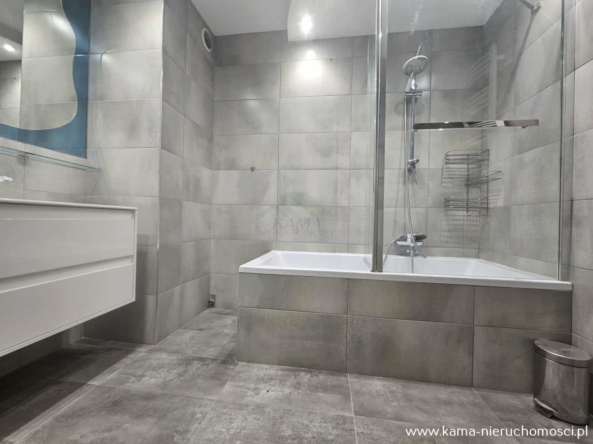 Mieszkanie przeszło remont, a jego wykończenie obejmuje stolarkę okienną PCV, podłogi wykończone panelami i kaflami, co gwarantuje trwałość i estetykę.