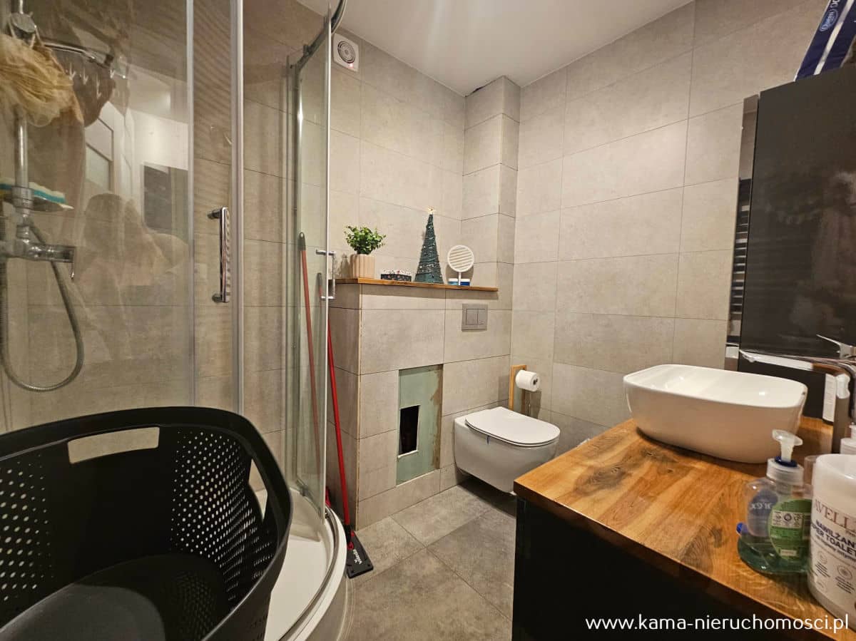 - nowoczesna łazienka z prysznicem i WC