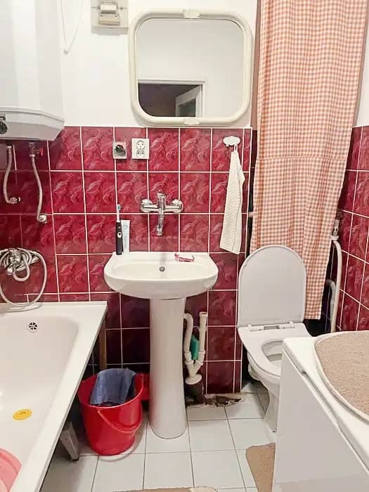 Ogrzewanie z sieci miejskiej, natomiast ciepła woda z bojlera elektrycznego, kuchenka gazowa.