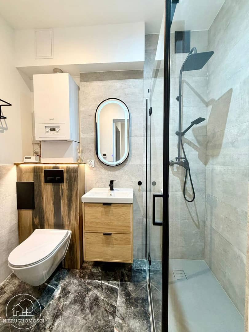 Łazienka została wyposażona w komfortowe ogrzewanie podłogowe, które stanowi dodatkowy atut tego mieszkania.