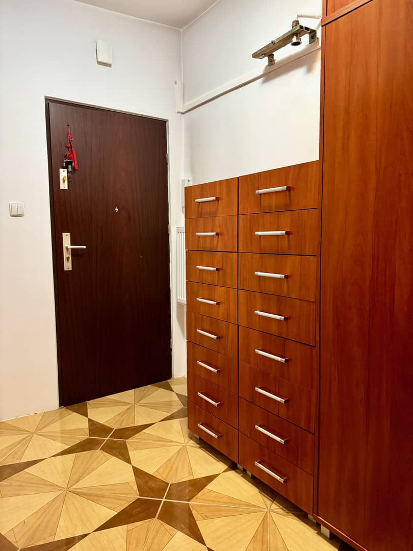 Mieszkanie kilka lat temu przeszło remont. Na podłogach są panele lub płytki, drzwi wejściowe wymienione, okna PCV.