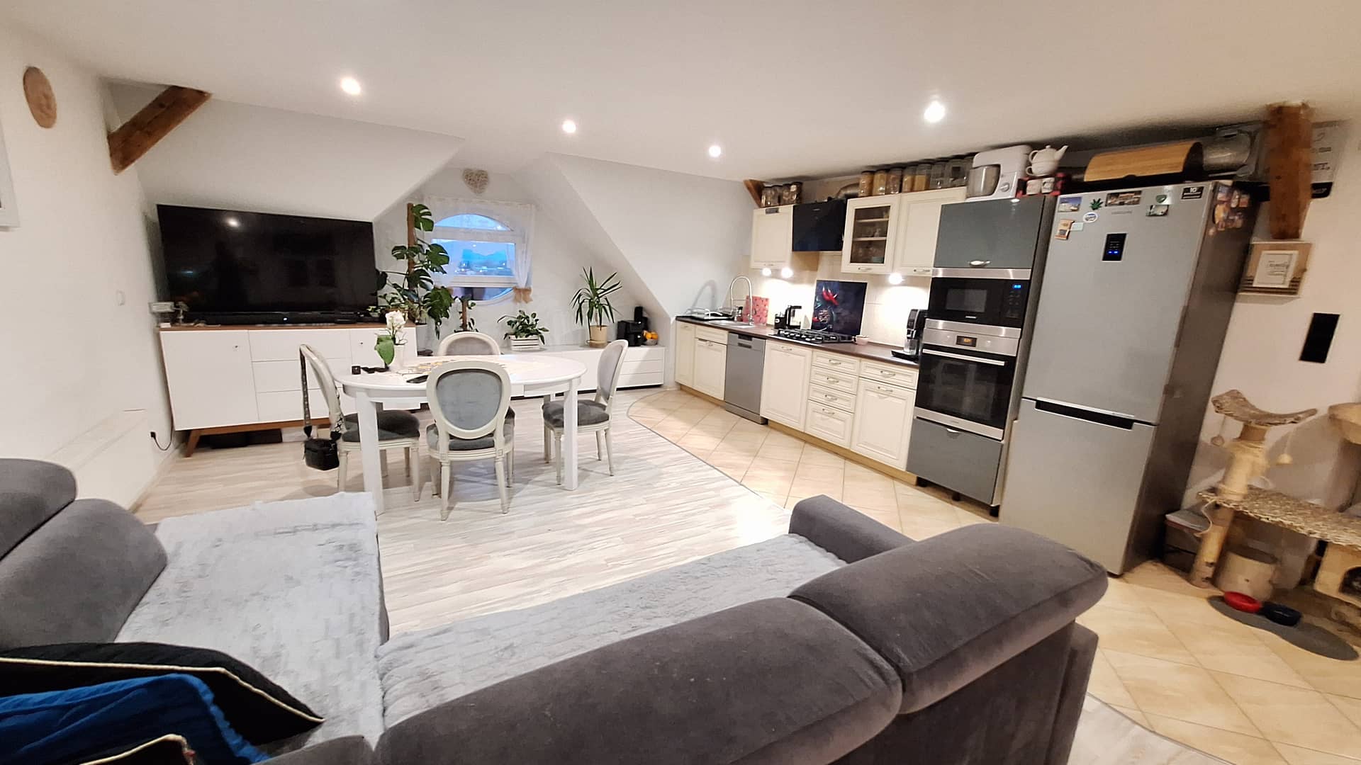 – słonecznego otwartego salonu połączonego z aneksem kuchennym