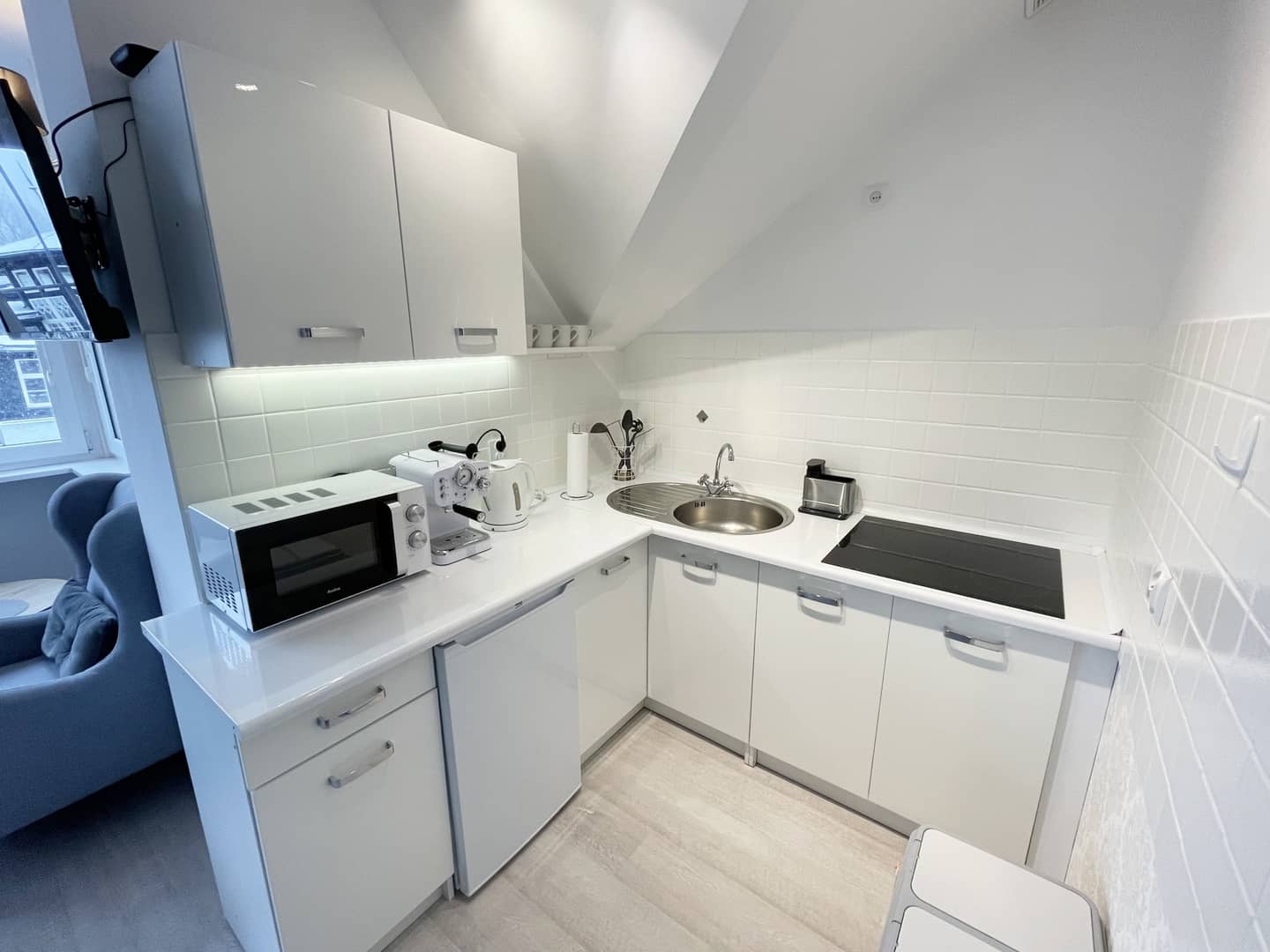 Apartament jest w pełni umeblowany i wyposażony we wszystkie sprzęty niezbędne do "przyjmowania" gości (cały sprzęt AGD, ekspres do kawy, tv, suszarka do włosów w łazience).