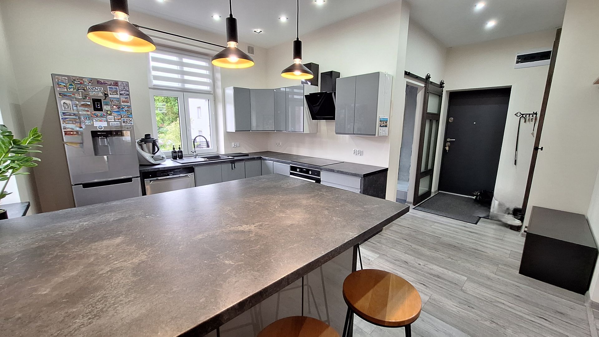 – otwartej i przestronnej kuchni z wyspą, świetnie wyposażonej w najnowocześniejsze sprzęty: lodówka, płyta, zmywarka…