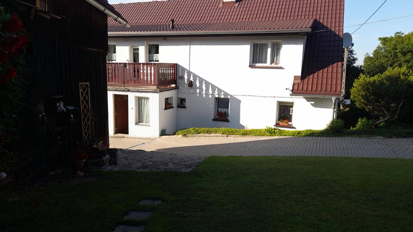 Posiadłość wiejska dom ze stodołą i ziemią rolną, łącznie 9300 m2, w gminie Stara Kamienica. Posadowiony na działce 2366 m2, budowa z cegły i kamienia, częściowo podpiwniczony. Dach pokry