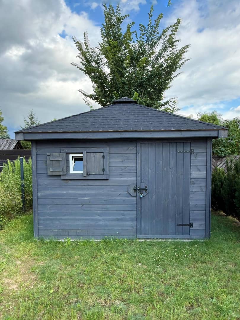 Przed wejściem jest wygodny taras. Na działce znajduje się domek gospodarczy o pow. 10 m2. Posesja ogrodzona. Miejsca postojowe na dwa do czterech aut.