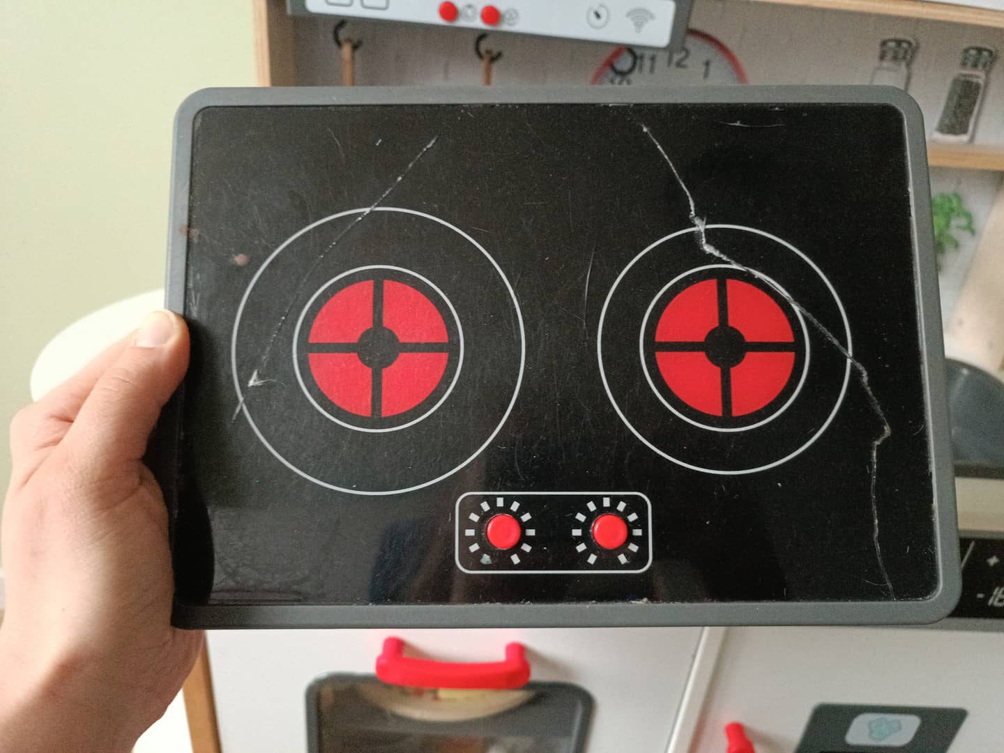 Uszkodzony element widoczny na ostatnich dwóch zdjęciach , pęknięta płyta na gotowania - dziecko przez przypadek stanęło :-(