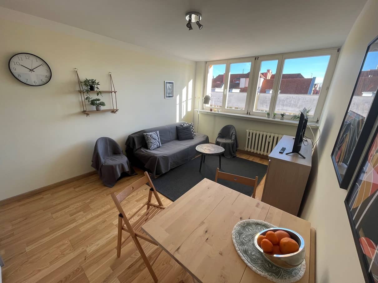 Mieszkanie jest umeblowane; lodówka, pralka, zmywarka, TV. Mieszkanie posiada 2 rozdzielne pokoje, osobną kuchnię, łazienkę. Cena najmu 1900 zł + czynsz 600 zł miesięcznie + prąd i woda. Czynsz zawiera koszty ogrzewania (ogrzewanie sieciowe/miejskie), czyszczenie części wspólnych budynku, administrację, wywóz śmieci, itp.