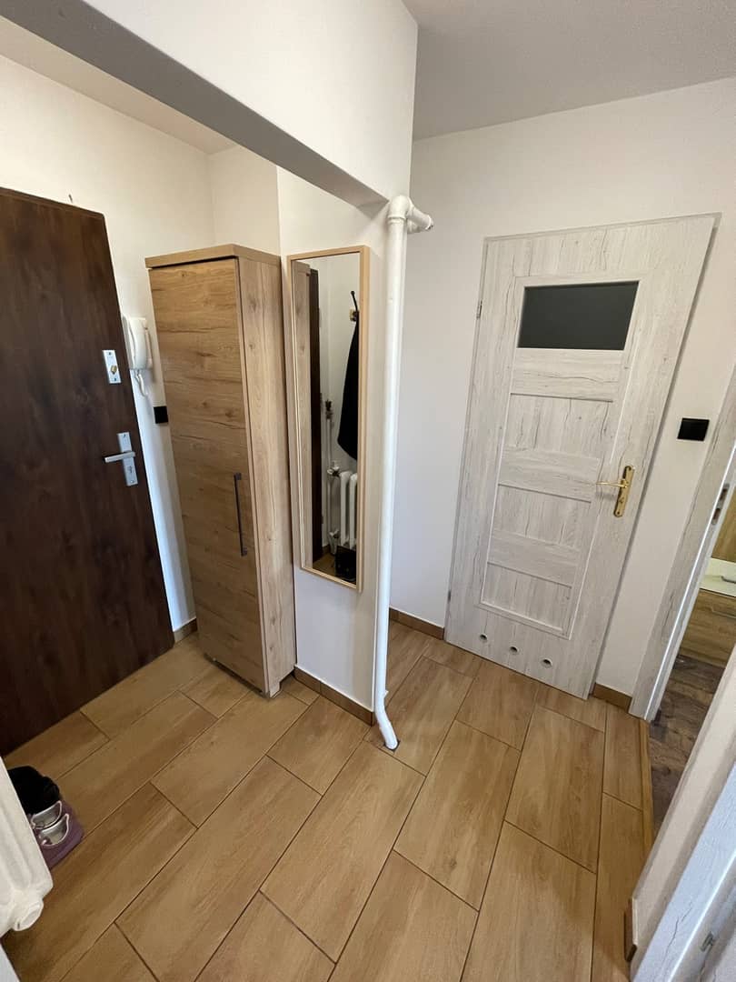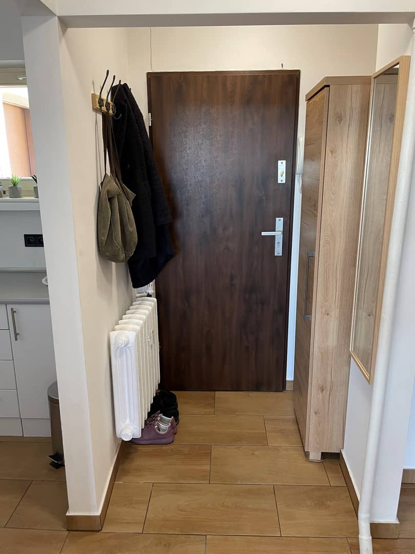 Mieszkanie 2-pokojowe, funkcjonalne i rozkładowe ( każde pomieszczenie z oddzielnym wejściem z przedpokoju) z dużym balkonem z pięknym widokiem na Karkonosze. Łazienka z kabina cała w kafelkach