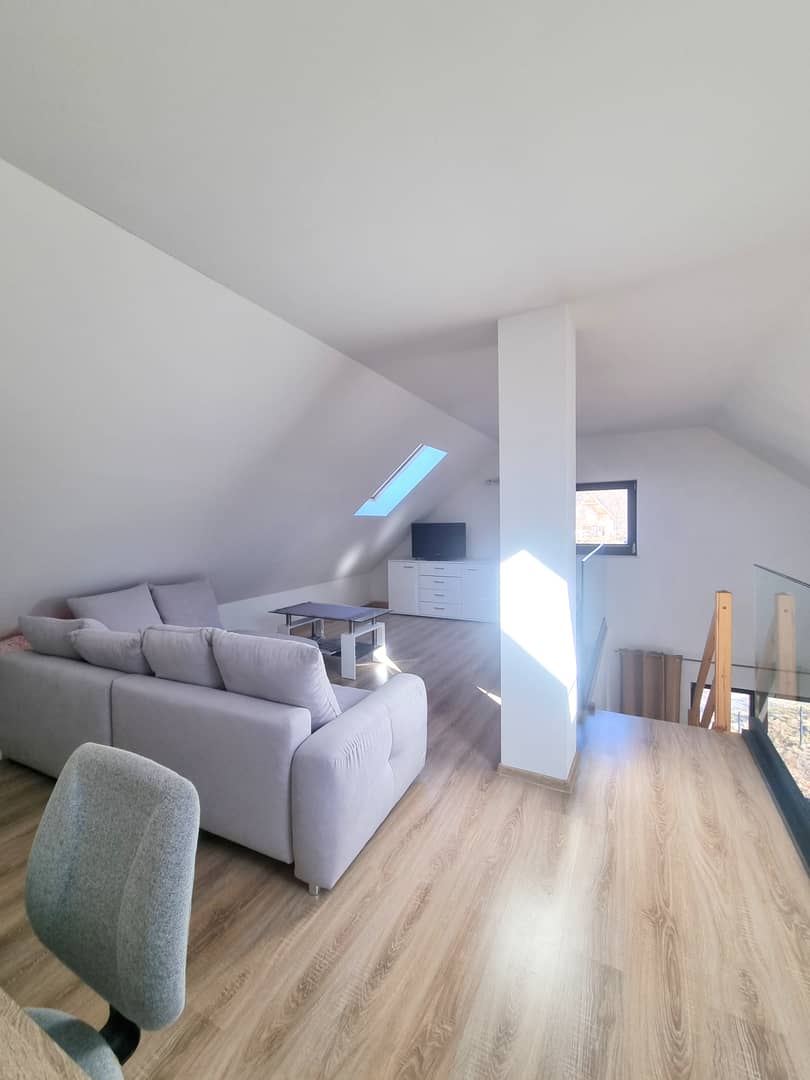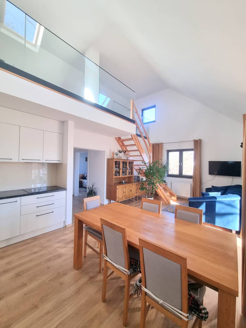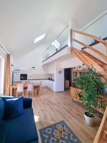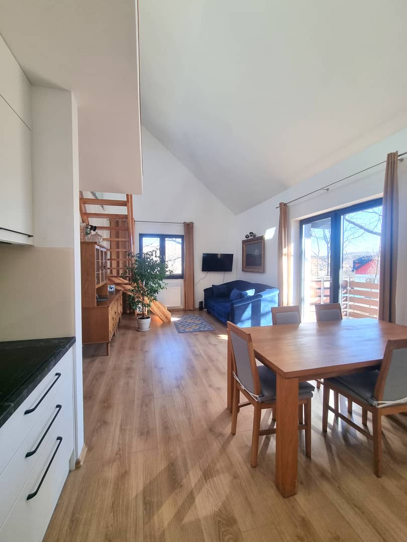 - salon z aneksem kuchennym i z wyjściem na zadaszony balkon