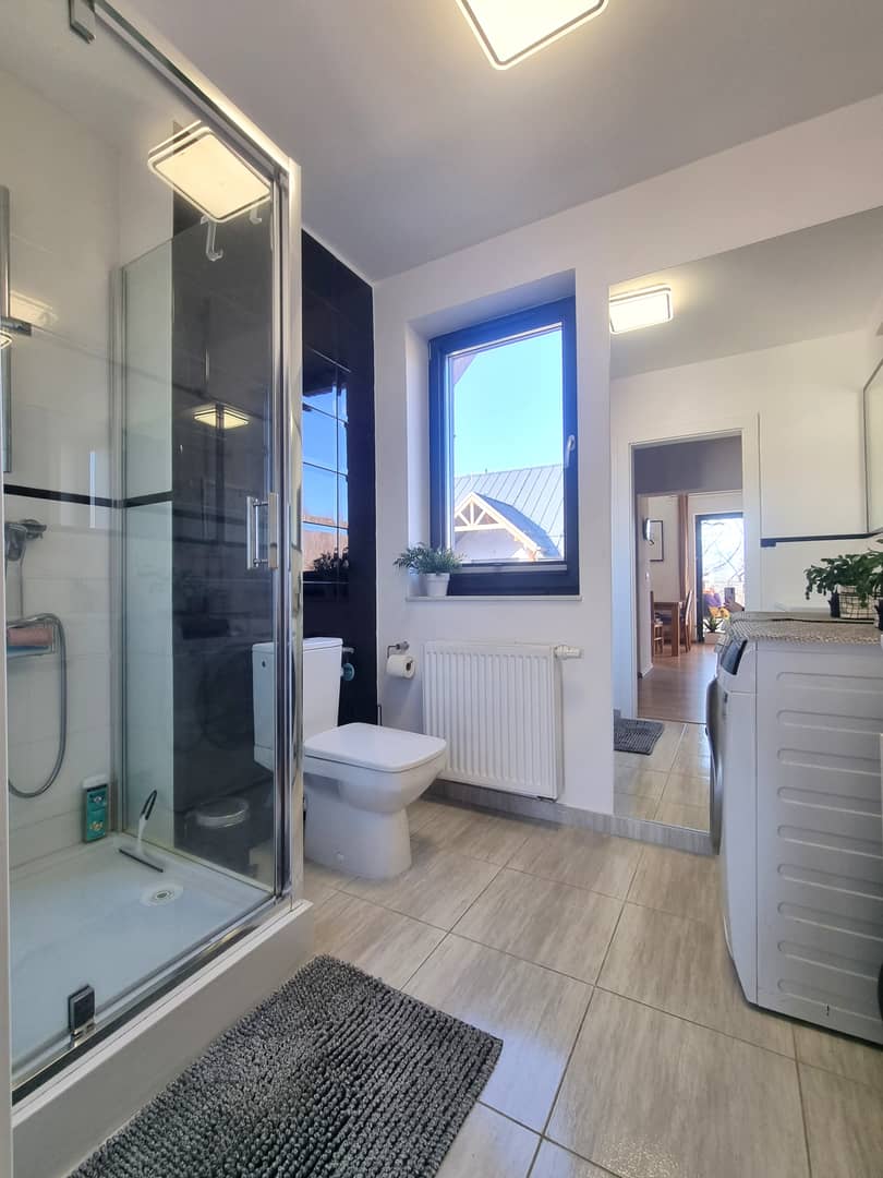Na podłogach mamy wysokiej klasy panele oraz kafle.