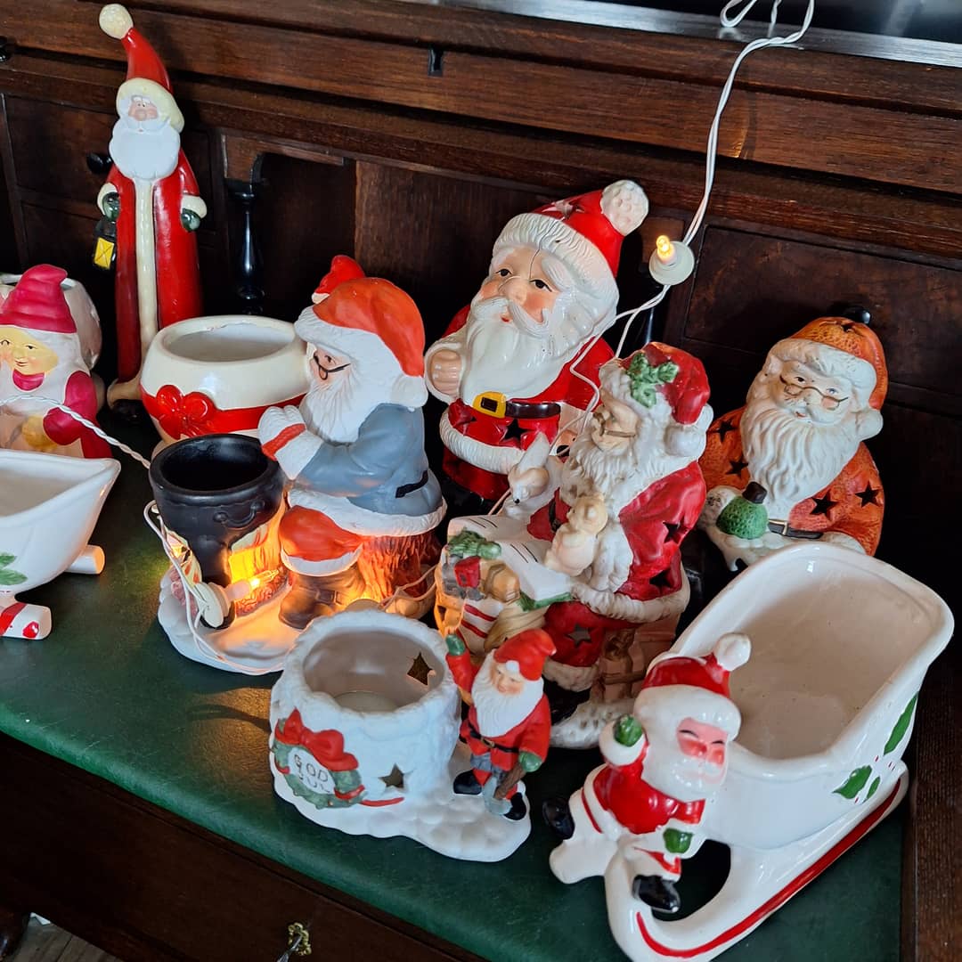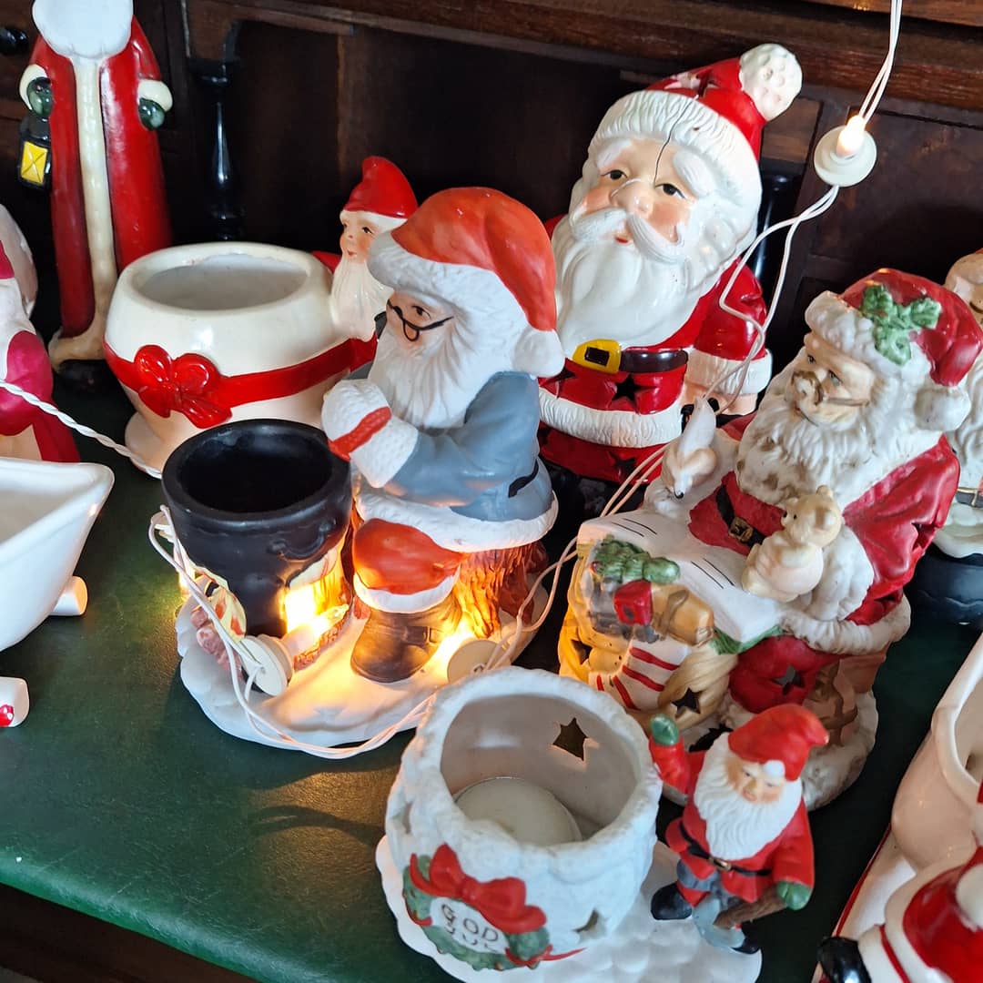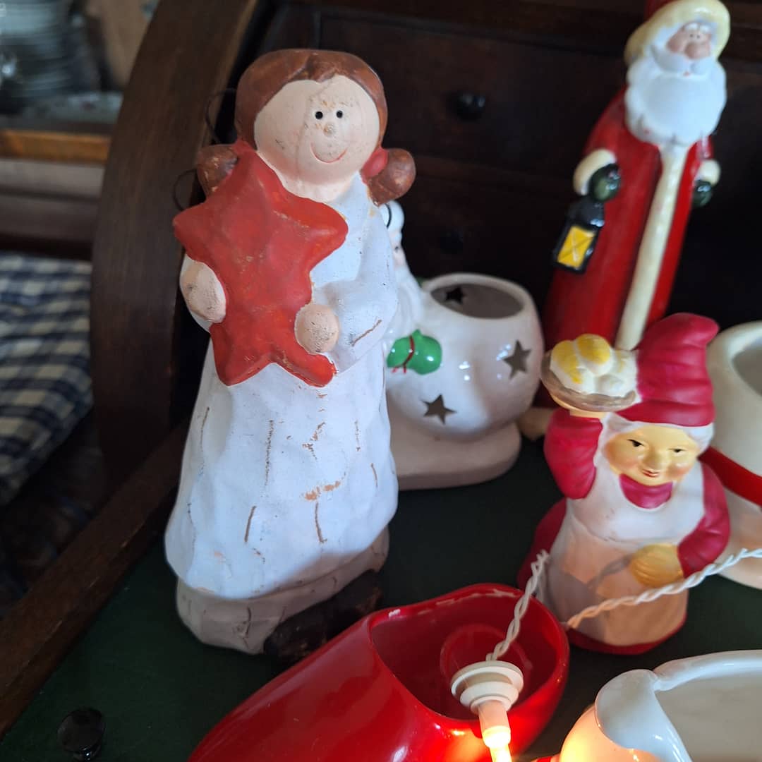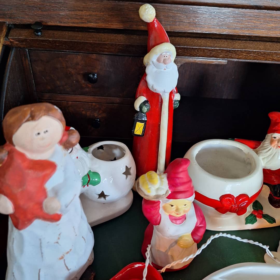 Świąteczne figurki Mikołaje, krasnale, aniolek 15 sztuk ,w tym 6 świeczników na podgrzewacz. Jeden nie jest w idealnym stanie. Razem ze światełkami na prąd 200 zł. Możliwy dowóz lub wysyłka.