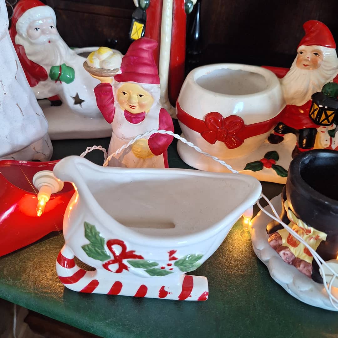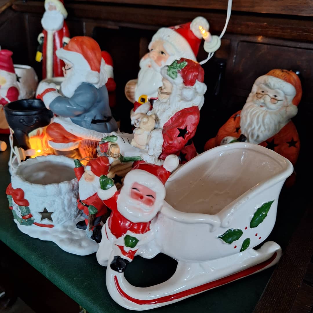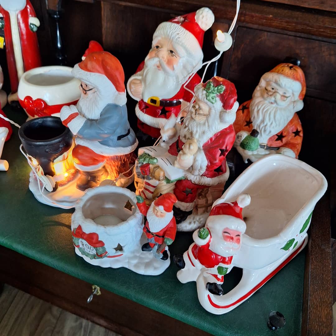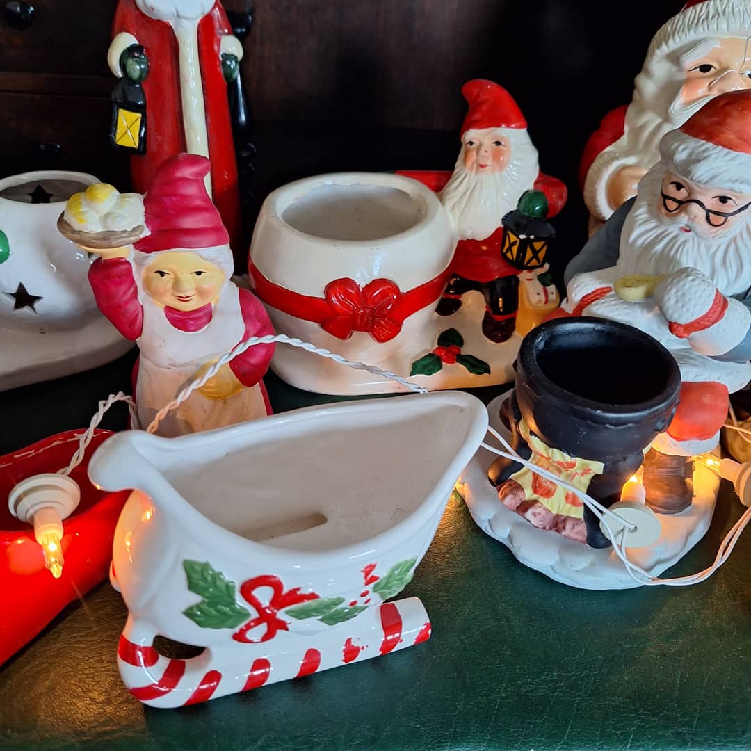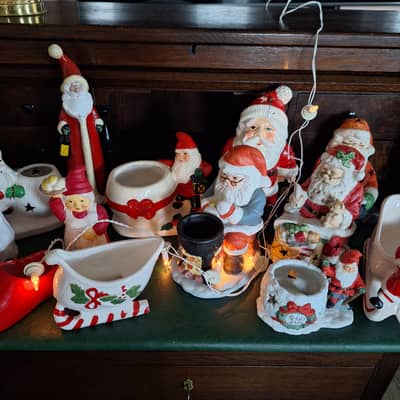 Świąteczne figurki Mikołaje, krasnale, aniolek 15 sztuk ,w tym 6 świeczników na podgrzewacz. Jeden nie jest w idealnym stanie. Razem ze światełkami na prąd 200 zł. Możliwy dowóz lub wysyłka.
