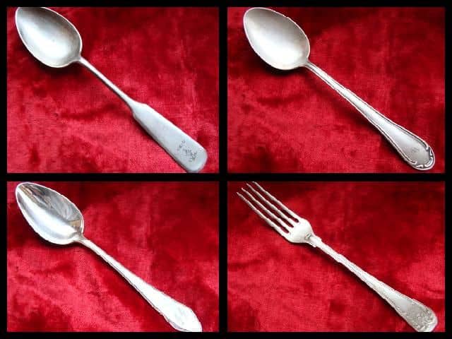 zegarki, srebrną biżuterię, srebrne cukiernice, sztućce, monety srebrne i