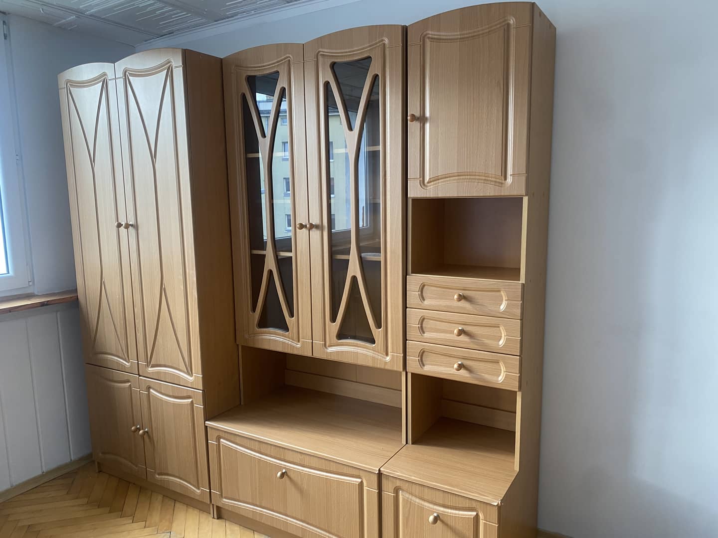 W przedpokoju oraz w mniejszym pokoju szafy w zabudowie,
