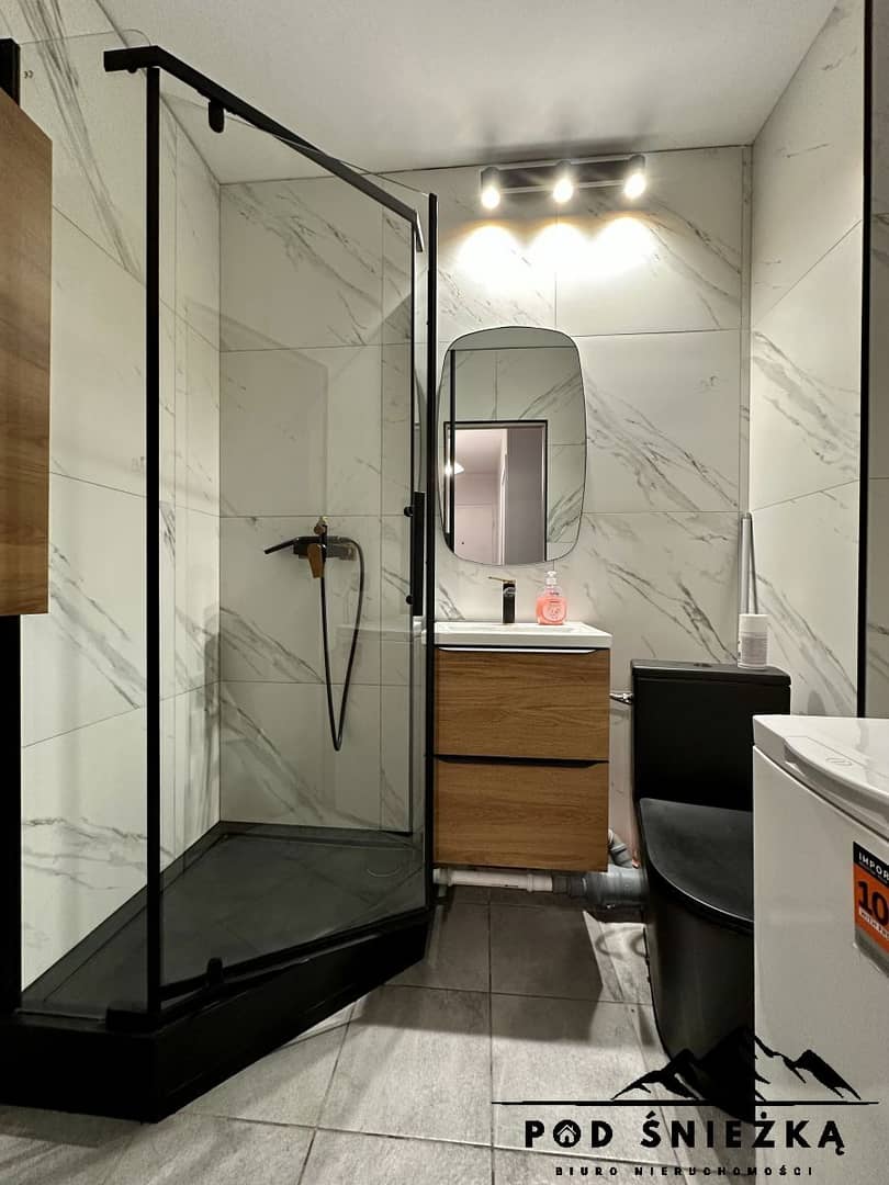 Łazienka z kabiną prysznicową i WC
