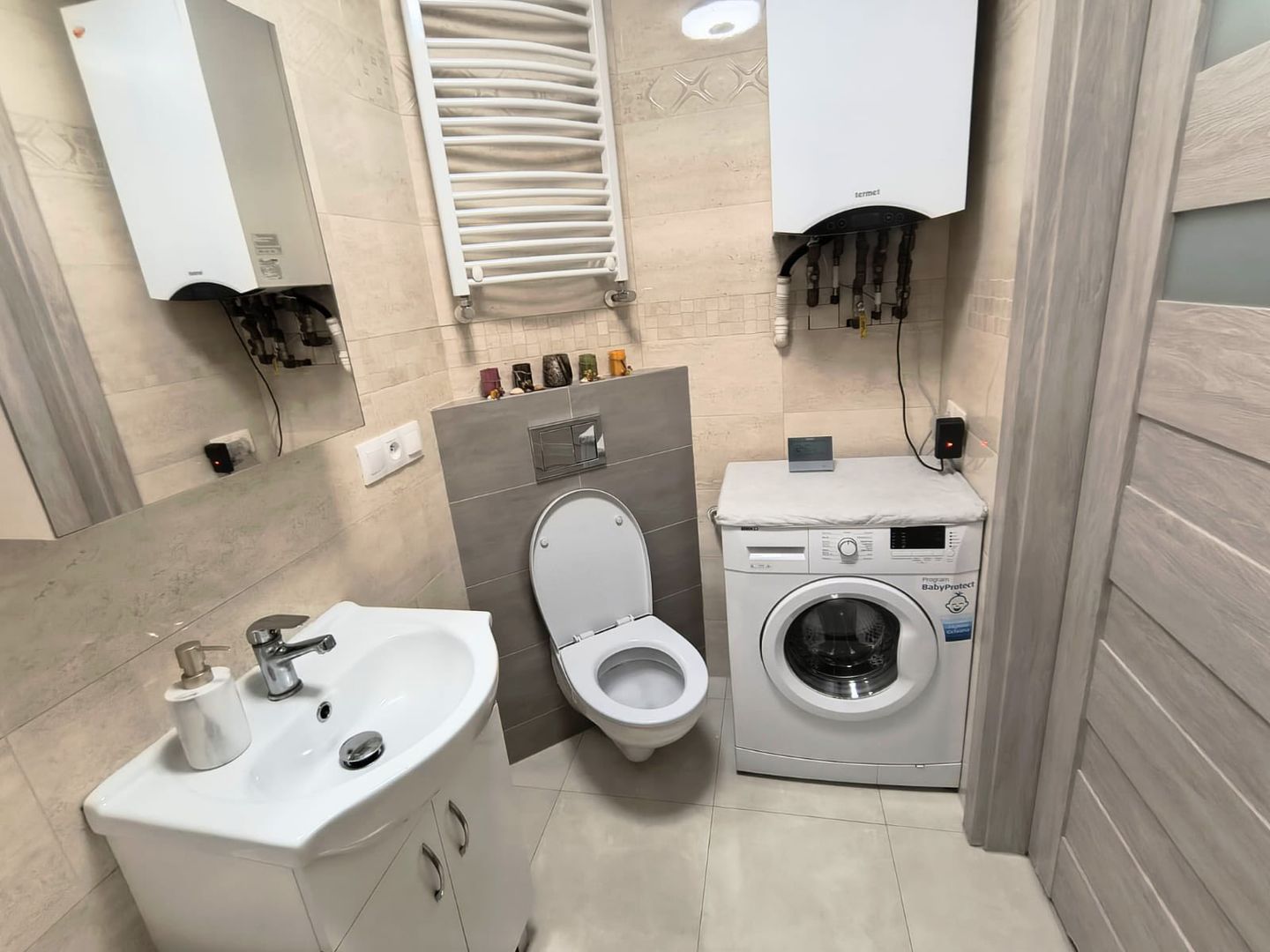 • Wyposażenie: kuchnia w zabudowie (płyta indukcyjna, piekarnik, zmywarka), meble pokojowe