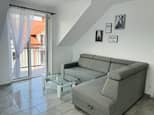 Parter - salon z wyjściem na duży balkon, kuchnia, toaleta.