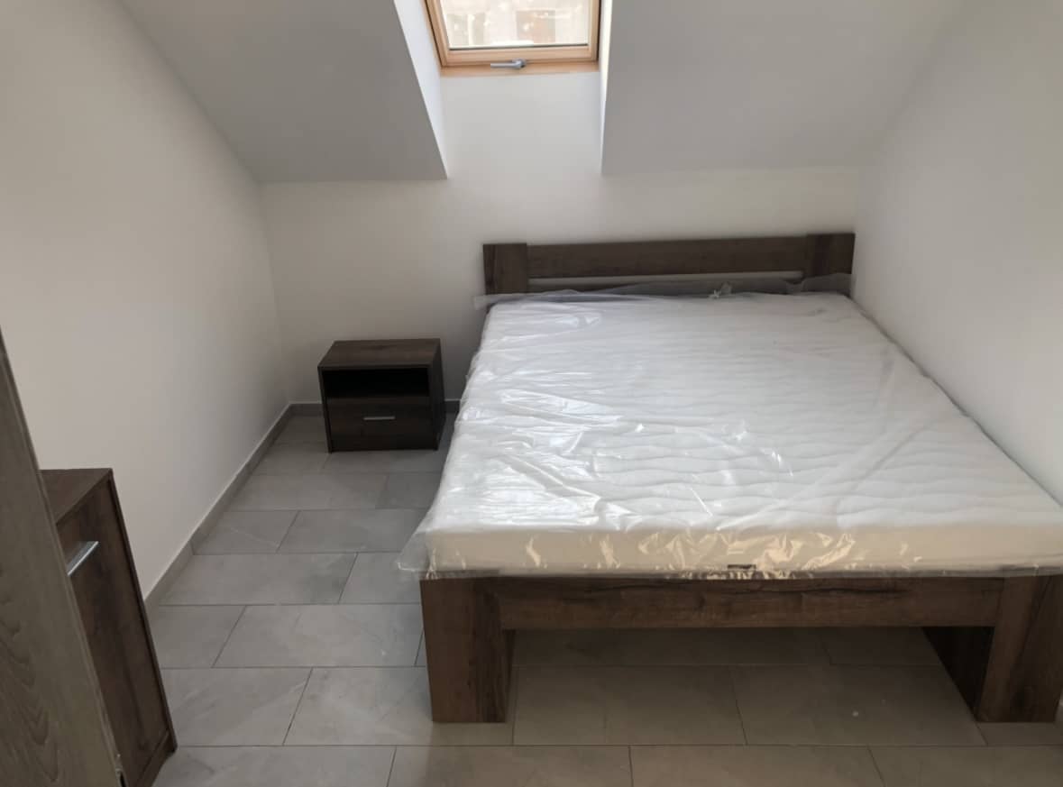 Sypialnia z łóżkiem, komodą i szafką nocną