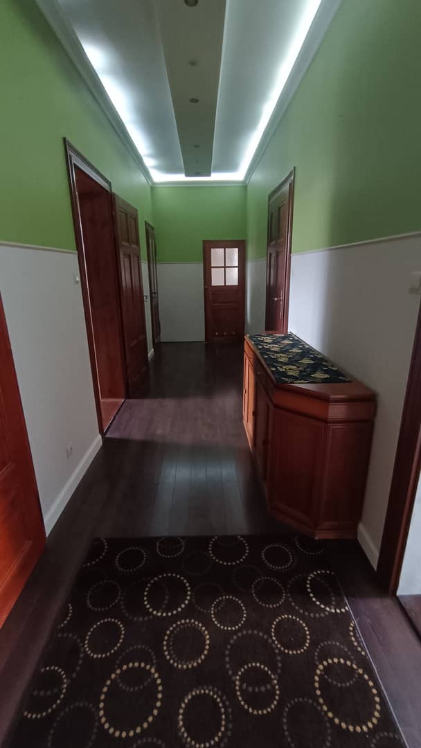 3 pokoi-salon, pokój dziecięcy sypialnia, dwie łazienki jedna przy sypialni z wanną, duża kuchnia, duży przedpokój, spiżarka,dwa balkony, przynależne do mieszkania pomieszczenie na strychu.